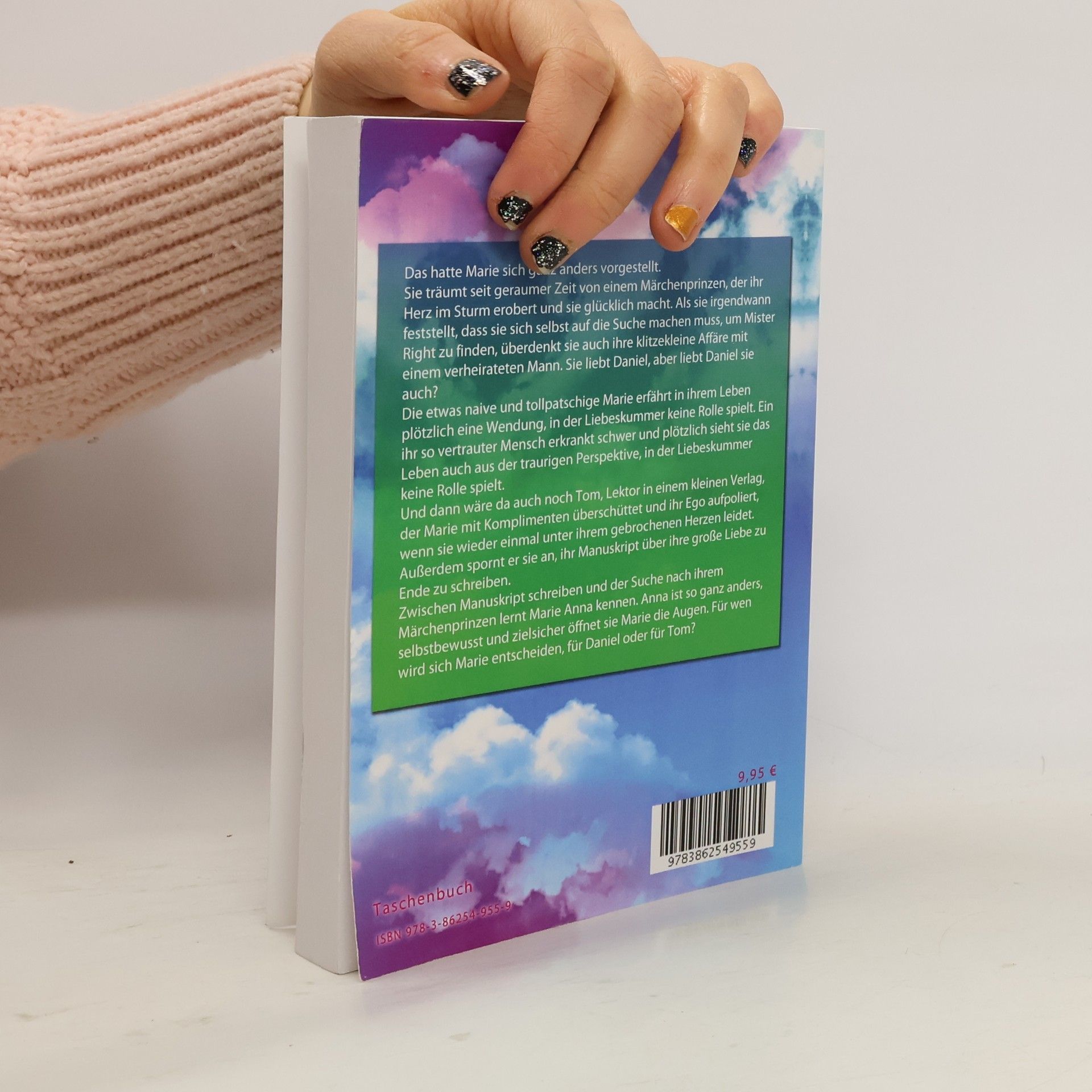 Das hatte Marie sich ganz anders vorgestellt. Sie träumt seit geraumer Zeit von einem Märchenprinzen, der ihr Herz im Sturm erobert und sie glücklich macht. Als sie irgendwann feststellt, dass sie sich selbst auf die Suche machen muss, um Mister Right zu finden, überdenkt sie auch ihre klitzekleine Affäre mit einem verheirateten Mann. Sie liebt Daniel, aber liebt Daniel sie auch? Die etwas naive und tollpatschige Marie erfährt in ihrem Leben plötzlich eine Wendung, in der Liebeskummer keine Rolle spielt. Ein ihr so vertrauter Mensch erkrankt schwer und plötzlich sieht sie das Leben auch aus der traurigen Perspektive, in der Liebeskummer keine Rolle spielt. Und dann wäre da auch noch Tom, Lektor in einem kleinen Verlag, der Marie mit Komplimenten überschüttet und ihr Ego aufpoliert, wenn sie wieder einmal unter ihrem gebrochenen Herzen leidet. Außerdem spornt er sie an, ihr Manuskript über ihre große Liebe zu Ende zu schreiben. Zwischen Manuskript schreiben und der Suche nach ihrem Märchenprinzen, lernt Marie Anna kennen. Anna ist so ganz anders, selbstbewusst und zielsicher öffnet sie Marie die Augen. Für wen wird sich Marie entscheiden, für Daniel oder für Tom?