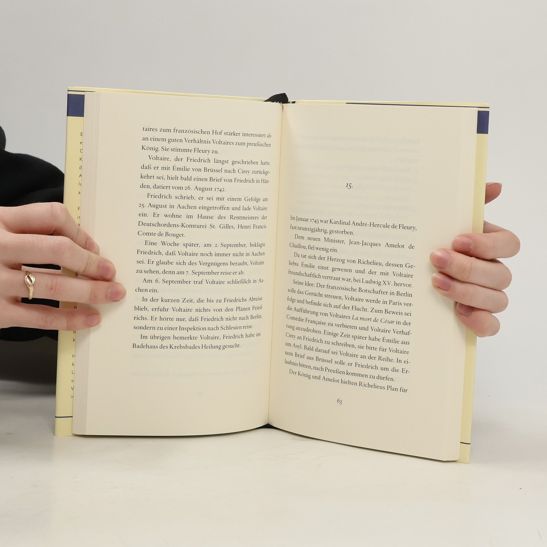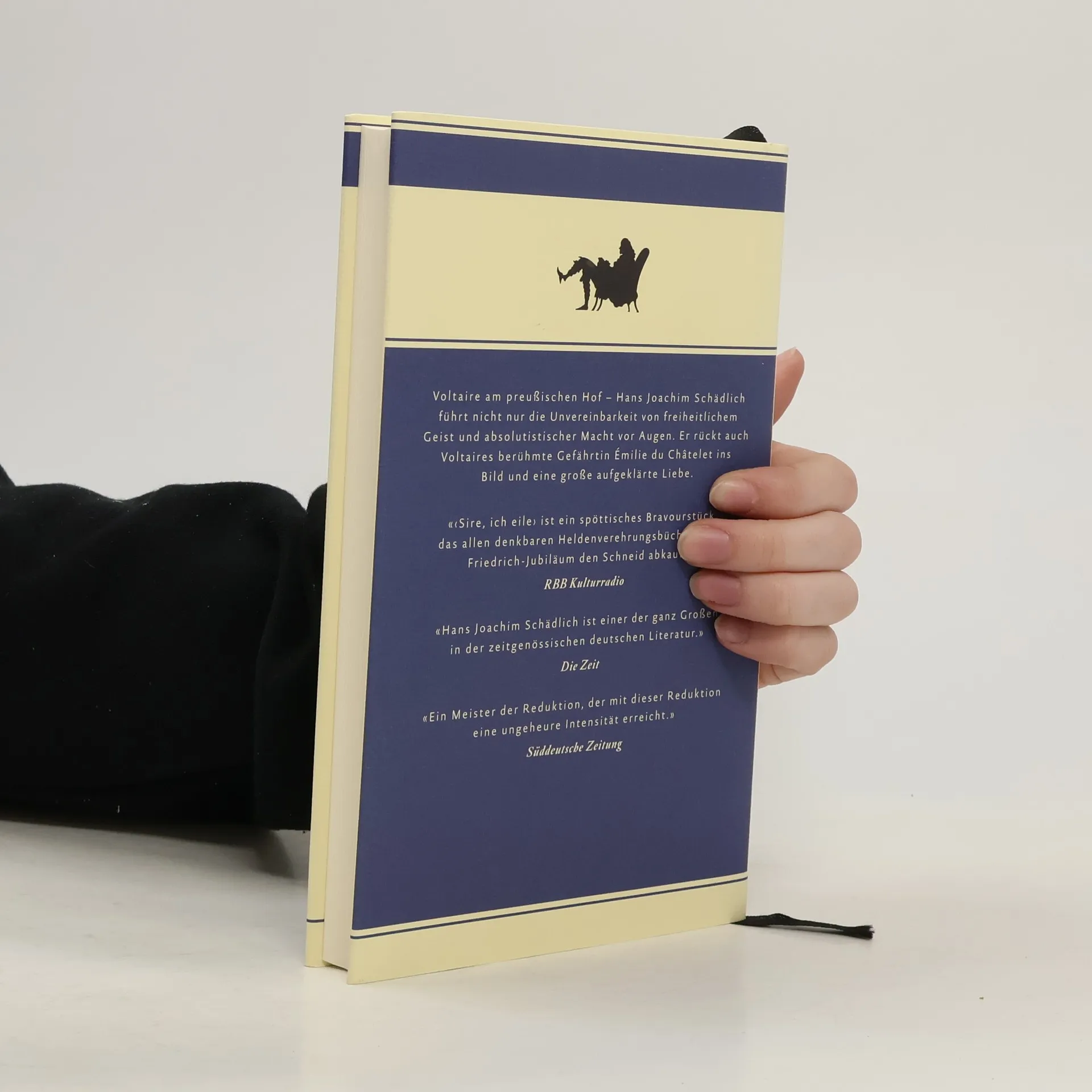 Enttäuscht vom Desinteresse des Versailler Hofes, erschüttert vom Tod seiner geliebten Émilie du Châtelet, gibt Voltaire 1750 dem Drängen des preußischen Königs nach: der 56-Jährige geht an den Hof des um achtzehn Jahre jüngeren Friedrich. Anders als Émilie hält er an der Wunschvorstellung fest, der König sei der 'Philosoph auf dem Thron'. Friedrich, der den berühmten Franzosen seit 1736 in Briefen umwirbt, verspricht sich von Voltaires Aufenthalt in Potsdam und Berlin nicht nur die Mehrung seines Ruhmes. Er hofft auf einen geistvollen Gesprächspartner - und auf einen Korrektor seiner eigenen poetischen und philosophischen Schriften. Bald erweist sich, dass Voltaire und Friedrich nach Temperament und Lebensgewohnheiten unverträglich sind. Es kommt zum Bruch. Voltaire ist in Gefahr, er will fort und macht sich auf die Reise. Die preußischen Residenten in der Freien Reichsstadt Frankfurt aber halten ihn auf Befehl Friedrichs fest: Er wird unter Hausarrest gestellt, sein Gepäck wird beschlagnahmt, er erfährt Erniedrigung und Willkür. Friedrich und Voltaire sehen sich nie wieder. Hans Joachim Schädlich führt mit äußerster Verknappung, jedoch historisch präzise, nicht nur die Unvereinbarkeit von freiheitlichem Geist und absolutistischer Macht vor Augen - er rückt auch Voltaires berühmte Gefährtin Émilie du Châtelet ins Bild und eine große aufgeklärte Liebe.