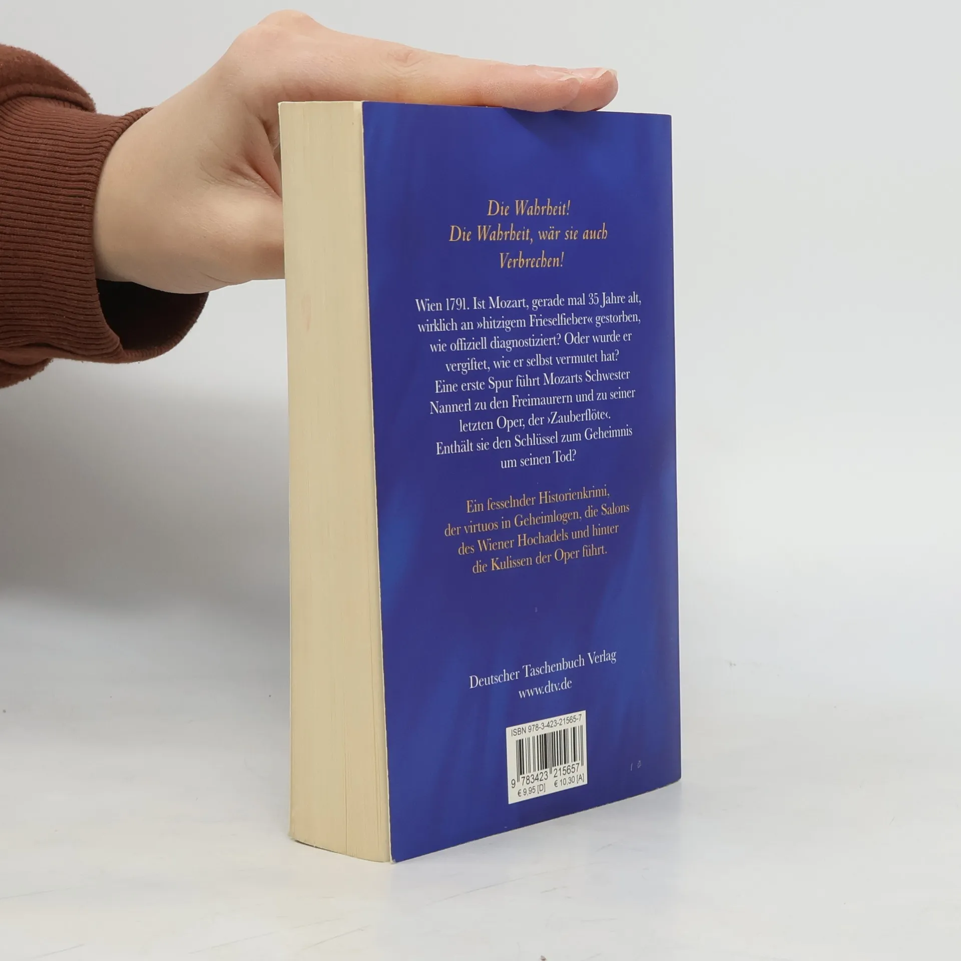 Der Fall Mozart Wien 1791. Ist Mozart, gerade mal 35 Jahre alt, wirklich an »hitzigem Frieselfieber« gestorben, wie offiziell diagnostiziert? Oder wurde er vergiftet, wie er selbst vermutet hat? Beherzt geht Mozarts Schwester Nannerl den düsteren Verstrickungen nach, die seinen Tod verschuldet haben könnten. Eine erste Spur führt zu den Freimaurern und zu Mozarts letzter Oper, der›Zauberflöte‹. Enthält sie den Schlüssel zum Geheimnis um seinen Tod? Konfrontiert mit Komplotten österreichischer und preußischer Geheimdienste gerät Nannerl bei ihren Ermittlungen in höchste Gefahr …