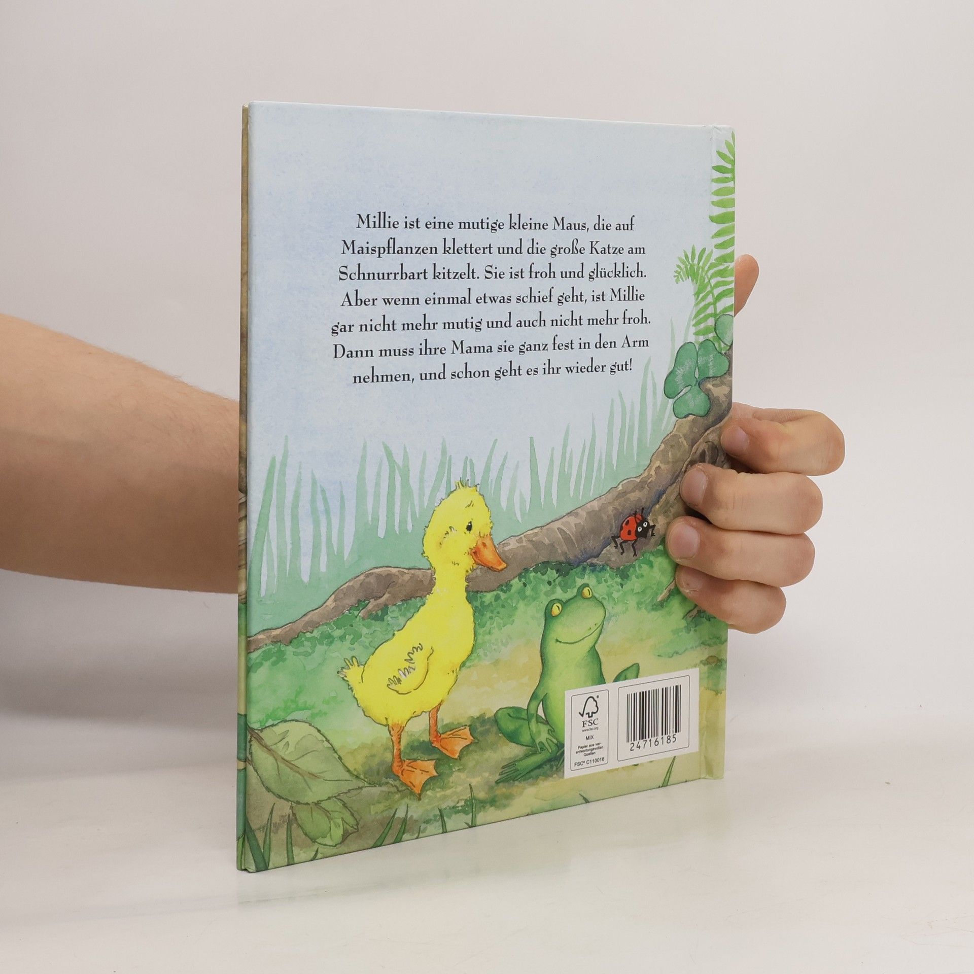 Millie ist eine mutige kleine Maus, die auf Maispflanzen klettert und die große Katze am Schnurrbart kitzelt. Sie ist froh und glücklich. Aber wenn einmal etwas schief geht, ist Millie gar nicht mehr mutig und auch nicht mehr froh. Dann muss ihre Mama sie ganz fest in den Arm nehmen, und schon geht es ihr wieder gut!