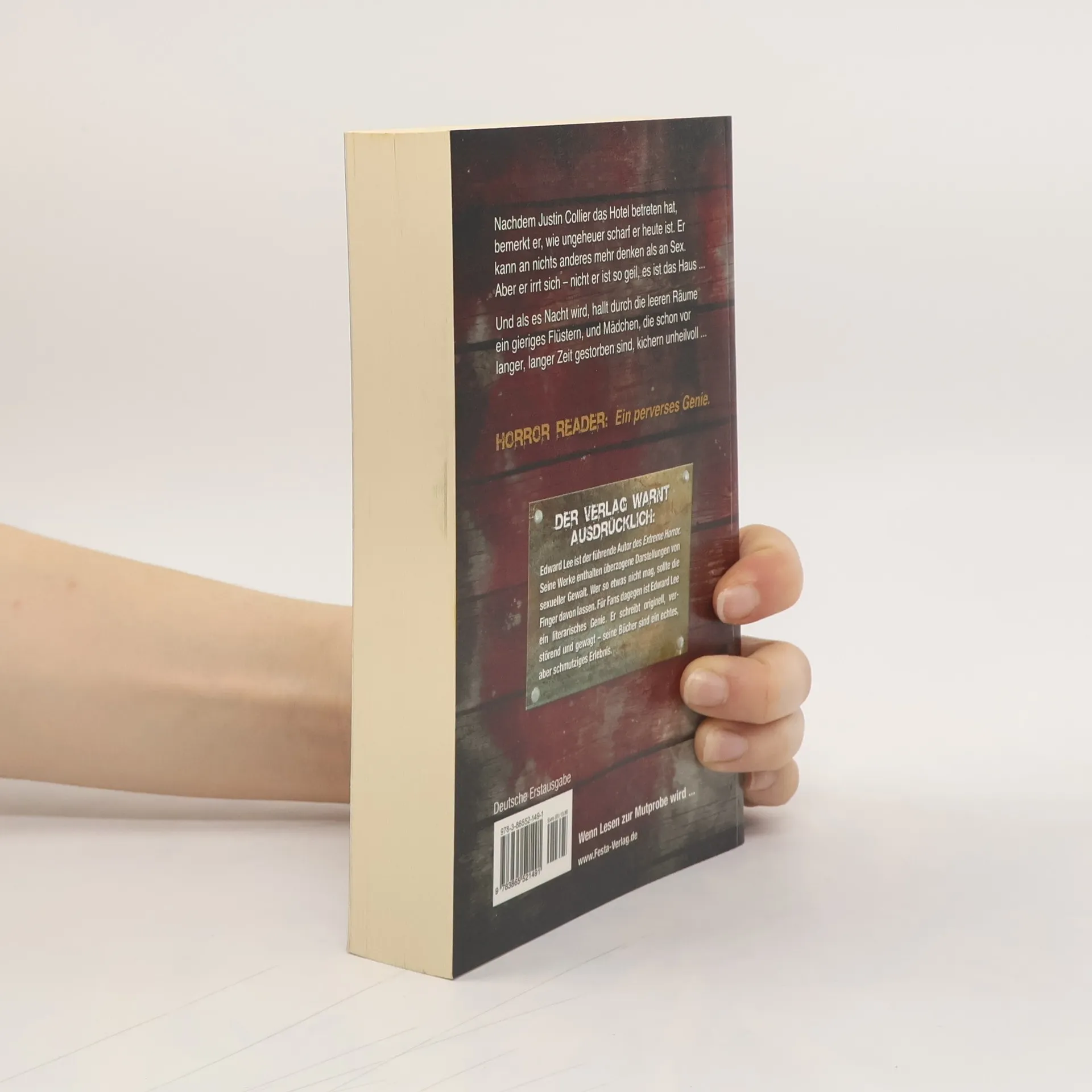Nachdem Justin Collier das Hotel betreten hat, bemerkt er, wie ungeheuer scharf er heute ist. Er kann an nichts anderes mehr denken als an Sex. Aber er irrt sich – nicht er ist so geil, es ist das Haus. Und als es Nacht wird, hallt durch die leeren Räume ein gieriges Flüstern, und Mädchen, die schon vor langer, langer Zeit starben, kichern unheilvoll. Amazon. de: "Lee testet bei dieser Geschichte in allen Belangen die Grenzen aus und zeigt, was 'Kreatives Schreiben' bedeutet.„ Horror Reader: “Ein perverses Genie." Der Verlag warnt ausdrücklich: Edward Lee ist der führende Autor des Extreme Horror. Seine Werke enthalten überzogene Darstellungen von sexueller Gewalt. Wer so etwas nicht mag, sollte die Finger davon lassen. Für Fans dagegen ist Edward Lee ein literarisches Genie. Er schreibt originell, verstörend und gewagt – seine Bücher sind ein echtes, aber schmutziges Erlebnis. Deutsche Erstausgabe. Broschur 19 x 12 cm, Umschlag in Lederoptik. Originaltitel: THE BLACK TRAIN