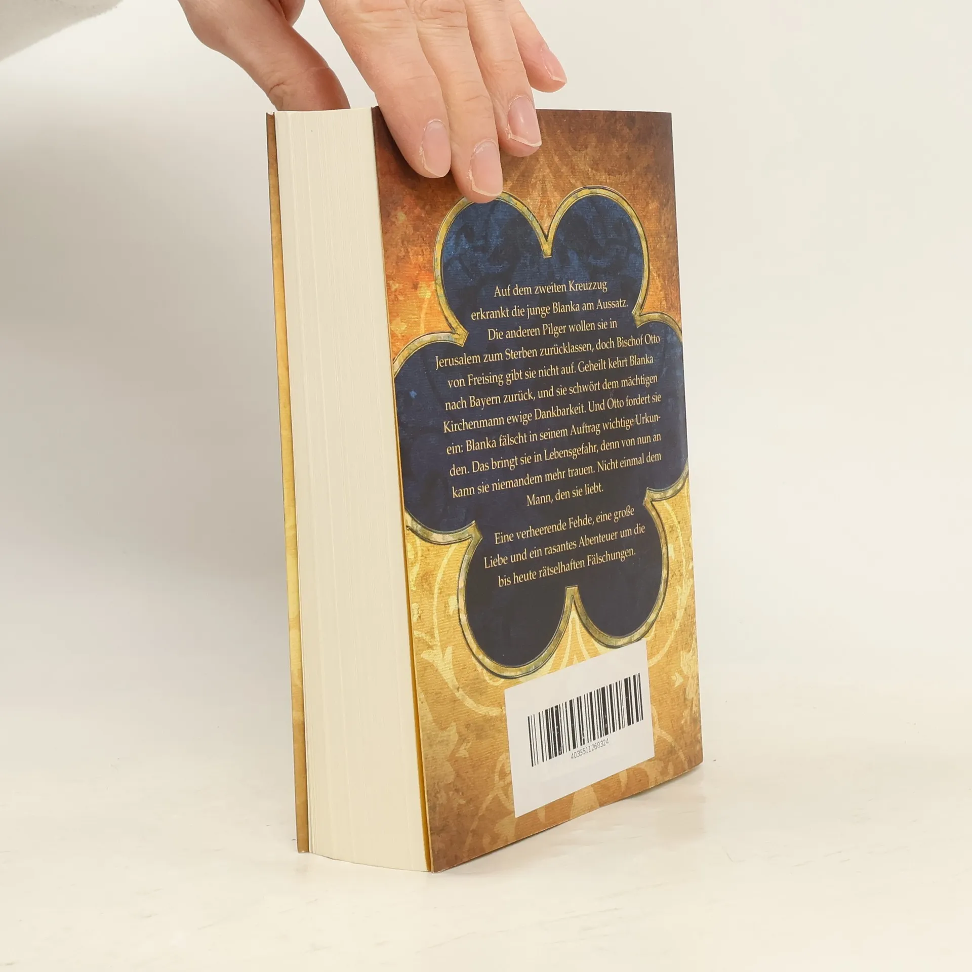 Das Lazariterspital in Jerusalem ist die Hölle, in welche die Aussätzigen verbannt sind. Auch für die junge Blanka endet der Zweite Kreuzzug hier. Sie wird zum Sterben zurückgelassen. Jahre später, wieder in Bayern, ist Blanka geheilt. Als ihr Vater erkrankt und Blanka ihr Erbe zu verlieren droht, muss sie im Krieg der beiden größten Mächte des Mittelalters Partei ergreifen. Um ihre Familie und ihren Herrn zu schützen, fälscht sie im Auftrag Ottos von Freising Urkunden. So wird sie zur heimlichen Kämpferin gegen die aufstrebenden Wittelsbacher. Bis sie sich in Ortolf verliebt, den gefährlichsten Ritter ihrer Feinde.