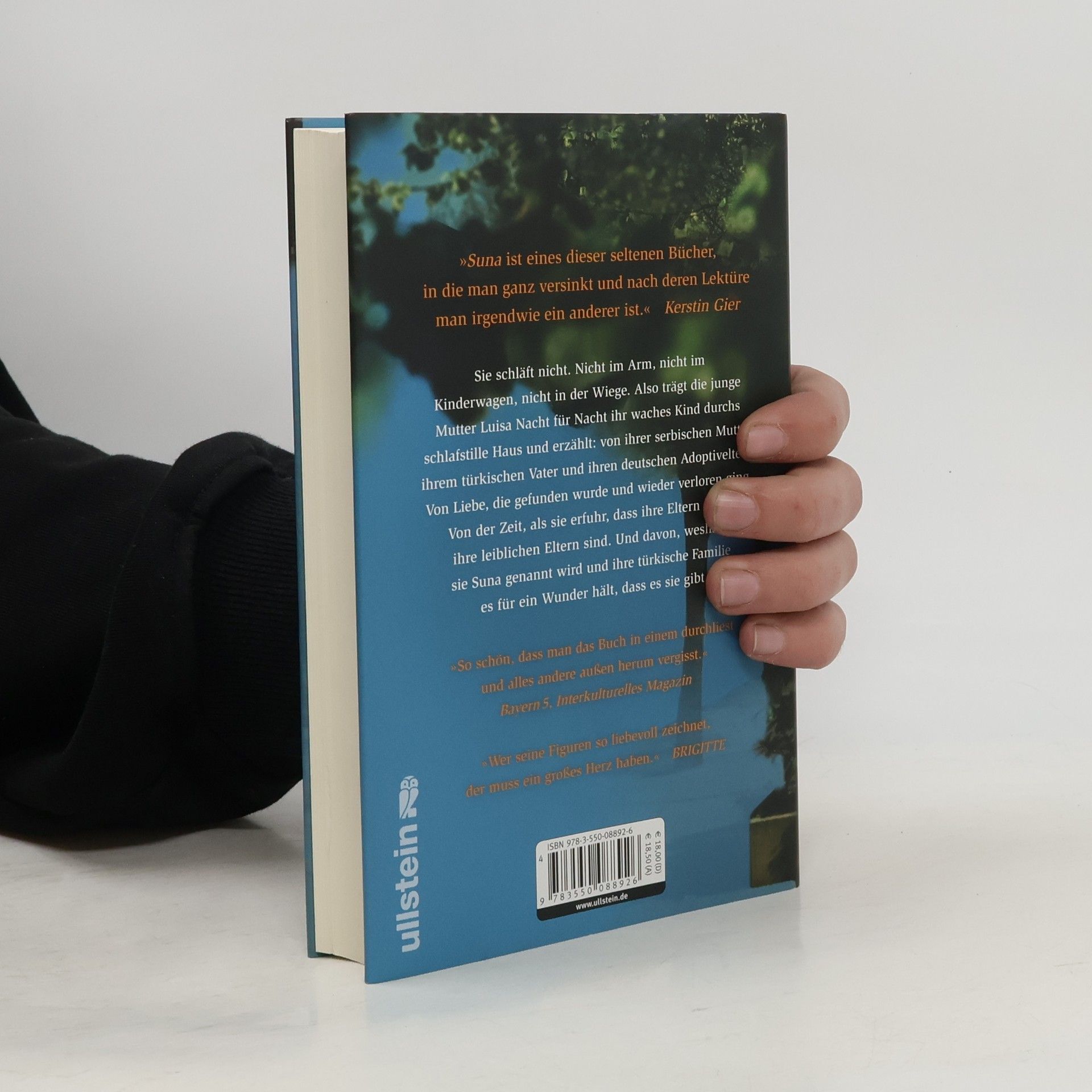 Sie schläft nicht. Nicht im Arm, nicht im Kinderwagen, nicht in der Wiege. „Sie kann hier keine Wurzeln schlagen“, sagt der Arzt. „Finden Sie Ihre.“ Also trägt die junge Mutter Luisa Nacht für Nacht ihr waches Kind durchs schlafstille Haus und erzählt: von ihrer serbischen Mutter, ihrem türkischen Vater und ihren deutschen Adoptiveltern. Von Liebe, die gefunden wurde und wieder verlorenging. Von der Zeit, als sie erfuhr, dass ihre Eltern nicht ihre leiblichen Eltern sind. Und davon, weshalb sie Suna genannt wird und ihre türkische Familie es für ein Wunder hält, dass es sie gibt. All das erzählt Luisa ihrem Kind und findet im Erzählen eine Heimat für sie beide. Suna ist die Geschichte einer jungen Frau, die lernt, dass zu ihrem Leben Menschen gehören, denen sie nie begegnet ist.