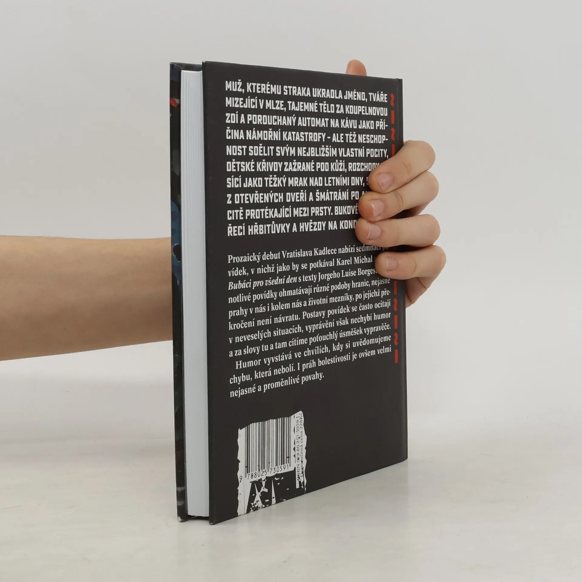 Muž, kterému straka ukradla jméno, tváře mizející v mlze, tajemné tělo za koupelnovou zdí a porouchaný automat na kávu jako příčina námořní katastrofy – ale též neschopnost sdělit svým nejbližším vlastní pocity, dětské křivdy zažrané pod kůží, rozchody visící jako těžký mrak nad letními dny, strach z otevřených dveří a šmátrání po autenticitě protékající mezi prsty. Bukové listí, zvířecí hřbitůvky a hvězdy na konci světa. Prozaický debut Vratislava Kadlece nabízí sedmnáct povídek různé délky a rozmanité formy, v nichž jako by se potkával Karel Michal a jeho Bubáci pro všední den s texty Jorge Luise Borgese. Jednotlivé povídky ohmatávají různé podoby hranic, nejasné prahy v nás i kolem nás a životní mezníky, po jejichž překročení není návratu. Postavy povídek se často ocitají v neveselých situacích, vyprávění však nechybí místy potemnělý, jindy zas jasnější humor. Humor vyvstává ve chvílích, kdy si uvědomujeme chybu, která – řečeno s Aristotelem – nebolí. I práh bolestivosti je ovšem velmi nejasné a proměnlivé povahy.