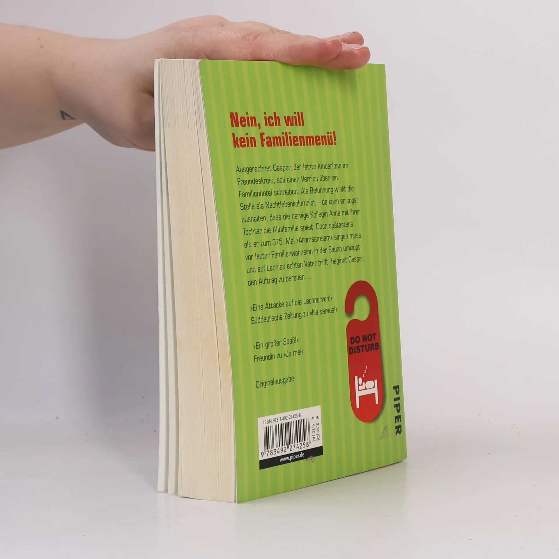 Ausgerechnet Caspar, der letzte Kinderlose im Freundeskreis, soll einen Verriss über ein Familienhotel schreiben. Als Belohnung winkt die Stelle als Nachtlebenkolumnist - da kann er sogar aushalten, dass die nervige Kollegin Anne mit ihrer Tochter die Alibifamilie spielt. Doch als er zum 375. Mal 'Aramsamsam' singen muss, vor lauter Familienwahnsinn in der Sauna umkippt und auf Leonies echten Vater trifft, beginnt Caspar, den Auftrag zu bereuen.