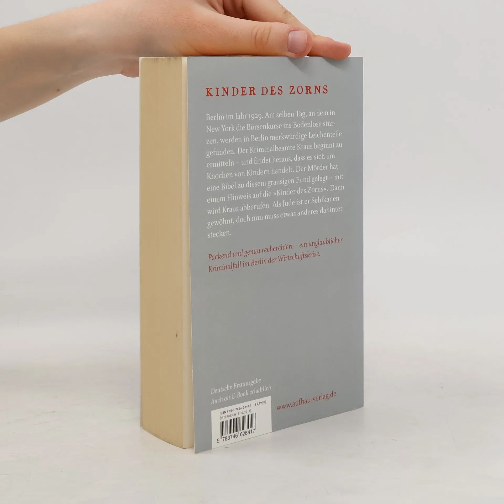 Kinder des Zorns Willi Kraus ist der beste Ermittler in Berlin. Als Jude jedoch wird er von seinen Vorgesetzten schikaniert. Als in Berlin immer mehr Kinder verschwinden und an dunklen Orten seltsame Knochen auftauchen, beginnt Kraus zu ermitteln. Buchstäblich im Untergrund der Stadt findet er eine heiße Spur. Dann aber entzieht man ihm den Fall und protegiert einen anderen Polizisten, der sich als Anhänger einer neuen, angeblich patriotischen Partei erweist. Für Kraus wird die Luft im Präsidium immer dünner. Juden gelten plötzlich wieder als Vaterlandsverräter. Doch dann wird der Mordfall immer monströser – und seinen Vorgesetzten bleibt nichts anderes übrig, als Kraus zurückzuholen. Ein Blick in die Abgründe Berlins zum Ende der 1920er Jahre – ein unglaublicher Kriminalfall im Berlin der Wirtschaftskrise.