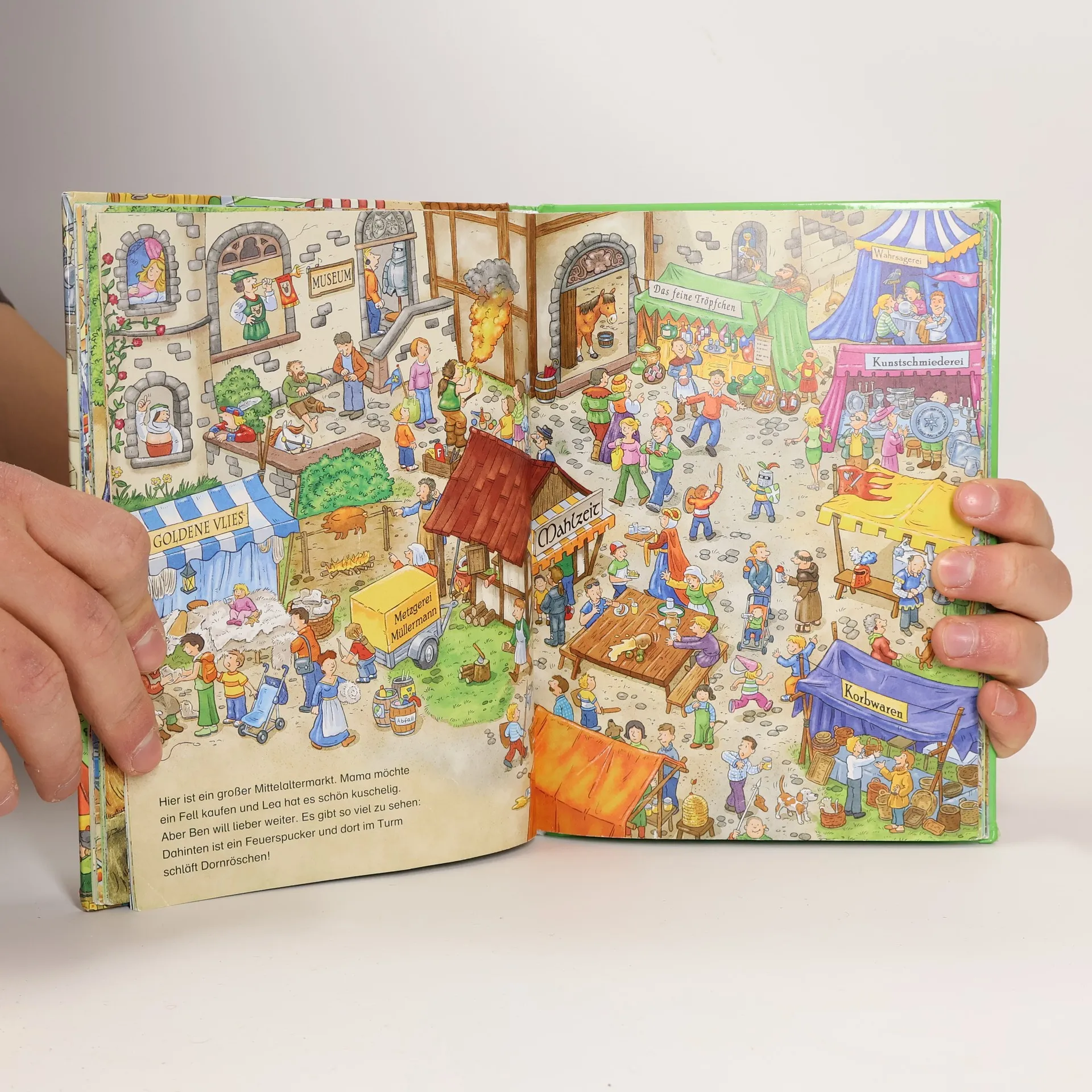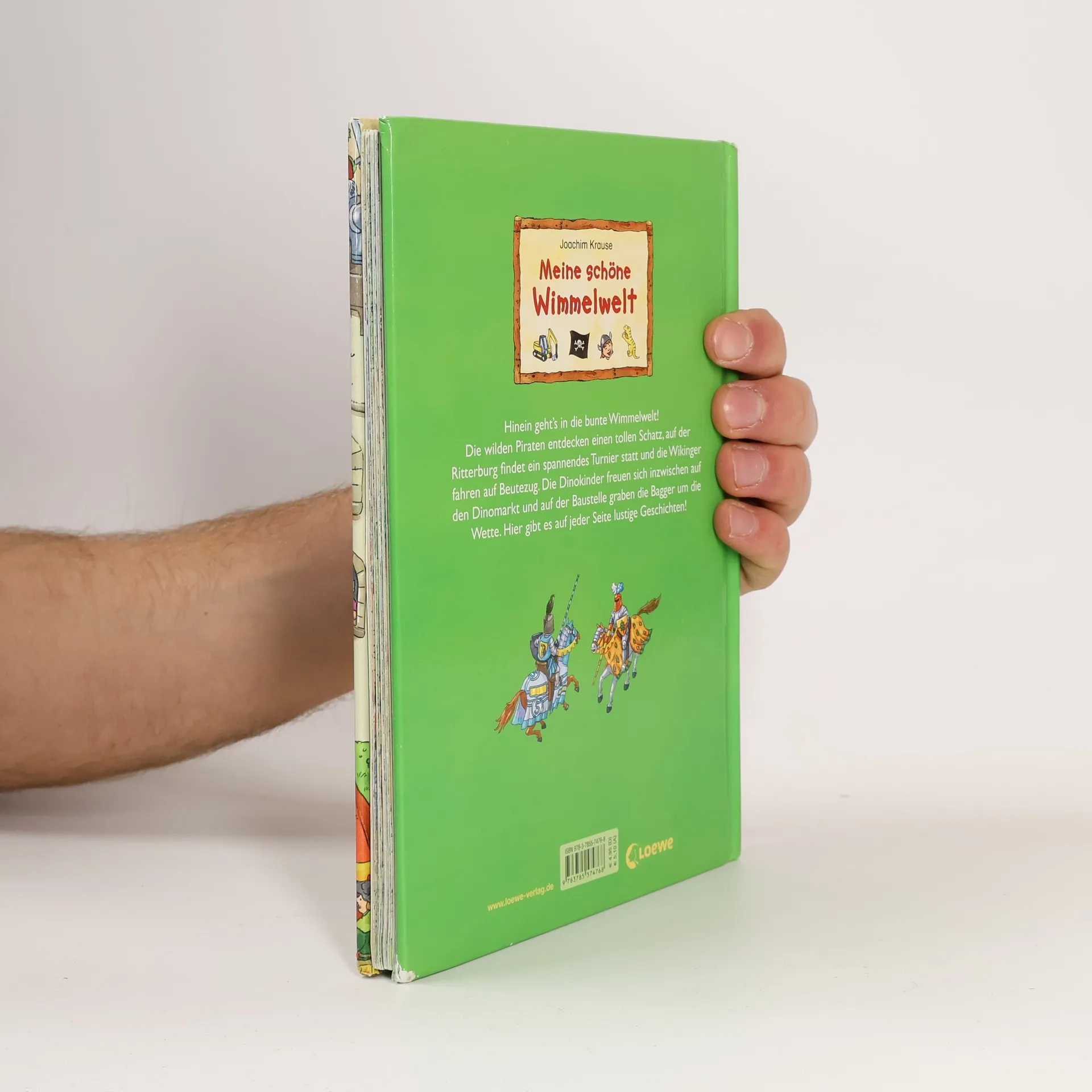 Hinein geht’s in die bunte Wimmelwelt! Die wilden Piraten entdecken einen tollen Schatz, auf der Ritterburg findet ein spannendes Turnier statt und die Wikinger fahren auf Beutezug. Die Dinokinder freuen sich inzwischen auf den Dinomarkt und auf der Baustelle graben die Bagger um die Wette. Hier gibt es auf jeder Seite lustige Geschichten!