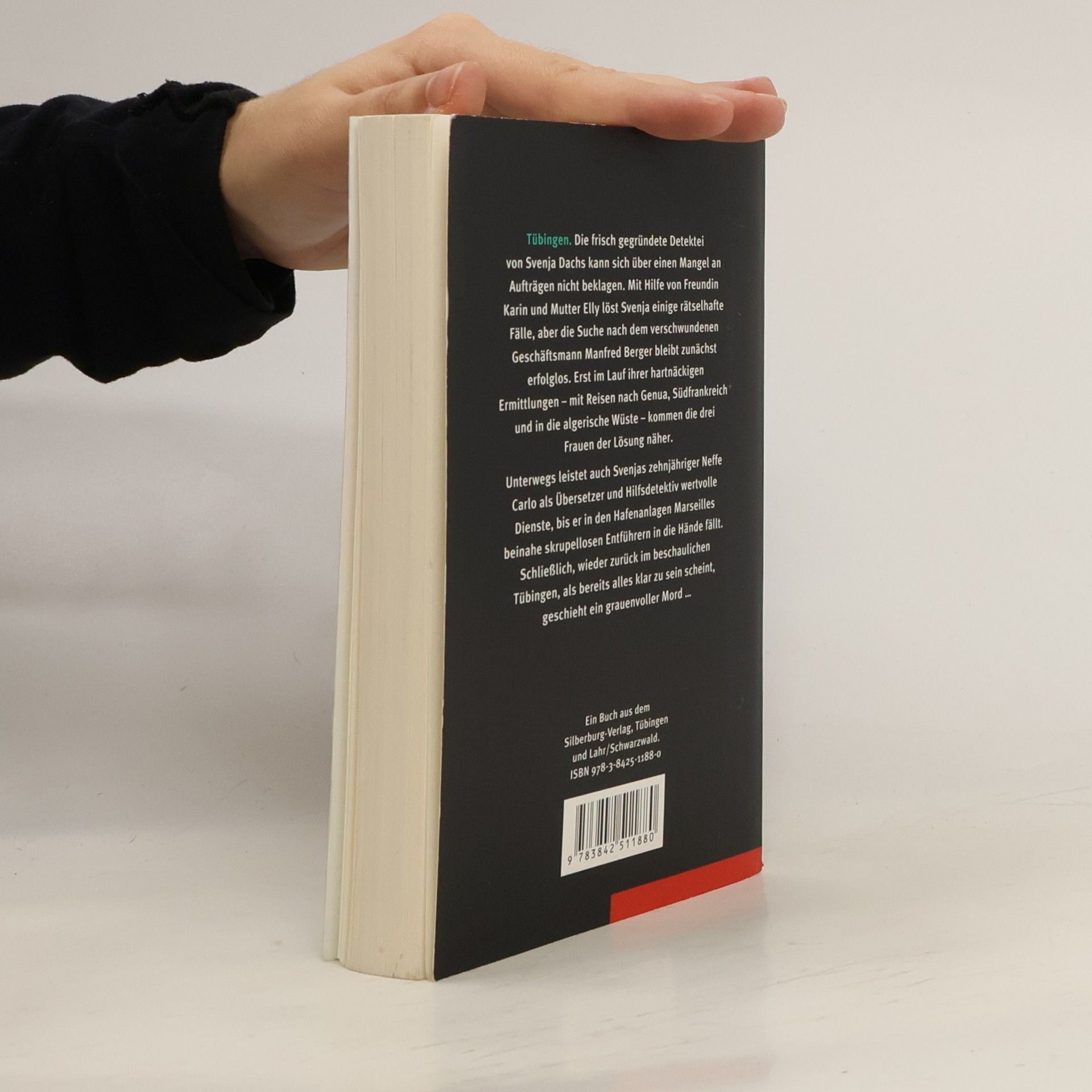 In Gerda Maria Pflocks Tübingen-Krimi ermittelt ein weibliches Trio. Die frisch gegründete Detektei von Svenja Dachs kann sich über einen Mangel an Aufträgen nicht beklagen. Mit Hilfe von Freundin Karin und Mutter Elly beschattet sie untreue Ehemänner, spürt Wirtschaftsspionen nach und entlarvt Mobbing-Kollegen, doch die Suche nach dem verschwundenen Geschäftsmann Manfred Berger bleibt zunächst erfolglos. Erst im Lauf ihrer hartnäckigen Ermittlungen, die sie nach Genua, Südfrankreich und in die algerische Wüste führen, kommen die drei Frauen der Lösung näher. Unterwegs leistet auch Svenjas zehnjähriger Neffe Carlo als Übersetzer und Hilfsdetektiv wertvolle Dienste, bis er in den Hafenanlagen Marseilles beinahe skrupellosen Entführern in die Hände fällt. Schließlich, wieder zurück im beschaulichen Tübingen, als bereits alles klar zu sein scheint, geschieht ein grauenvoller Mord.