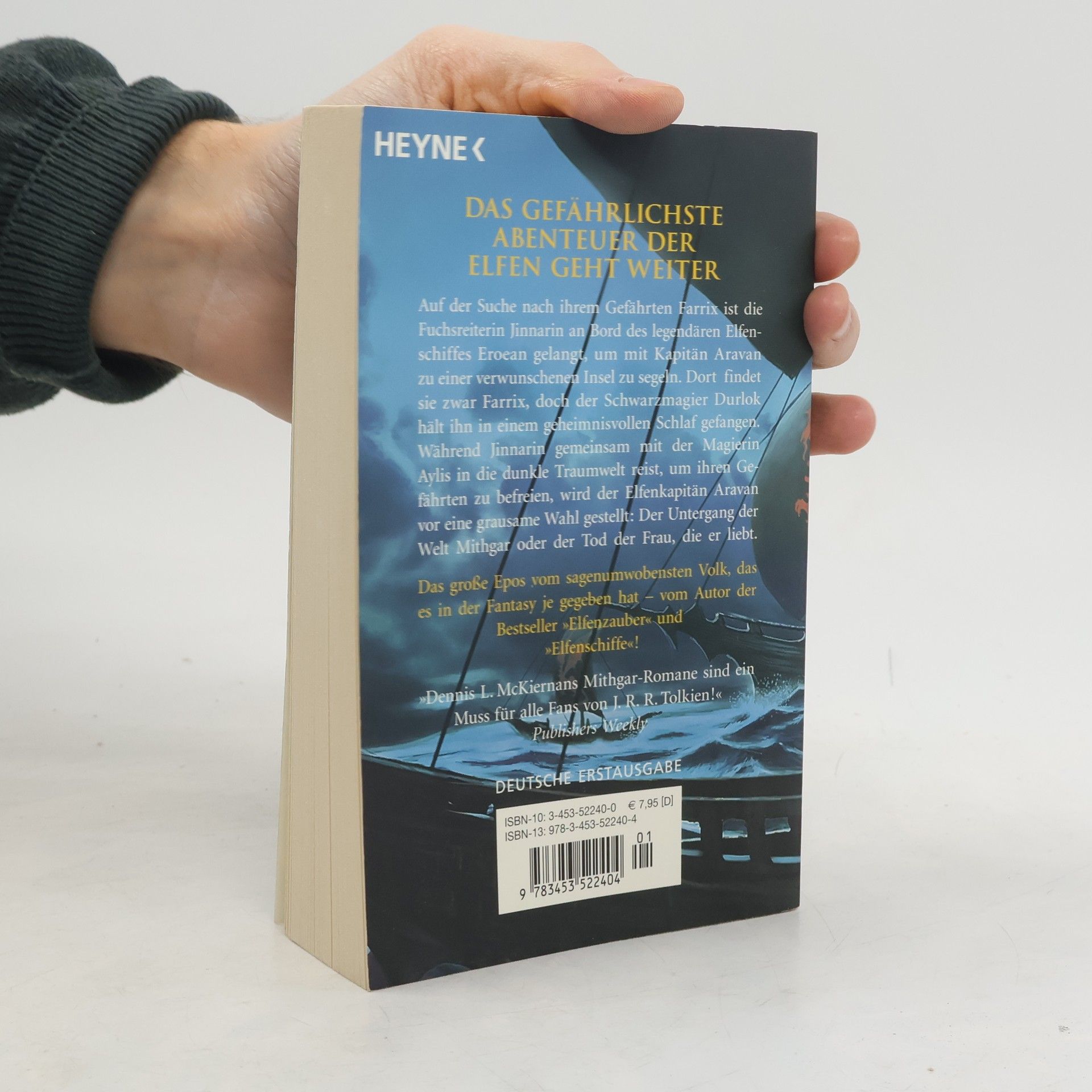 Tauchen Sie ein in ein neues Kapitel der großen Elfen-Saga von Dennis L. McKiernan: Auf der Suche nach ihrem Gefährten hat sich Jinnarin, eine Kriegerin des kleinen Volkes, die Hilfe des legendären Elfen Aravan gesichert. Doch welche Ziele verfolgt der mysteriöse Kapitän des schwarzen Schiffes wirklich? Die Fortsetzung von „Elfenkrieger“ und „Elfenschiffe“ ist eine fesselnde Reise durch die grandiose Fantasy-Welt Mithgars.