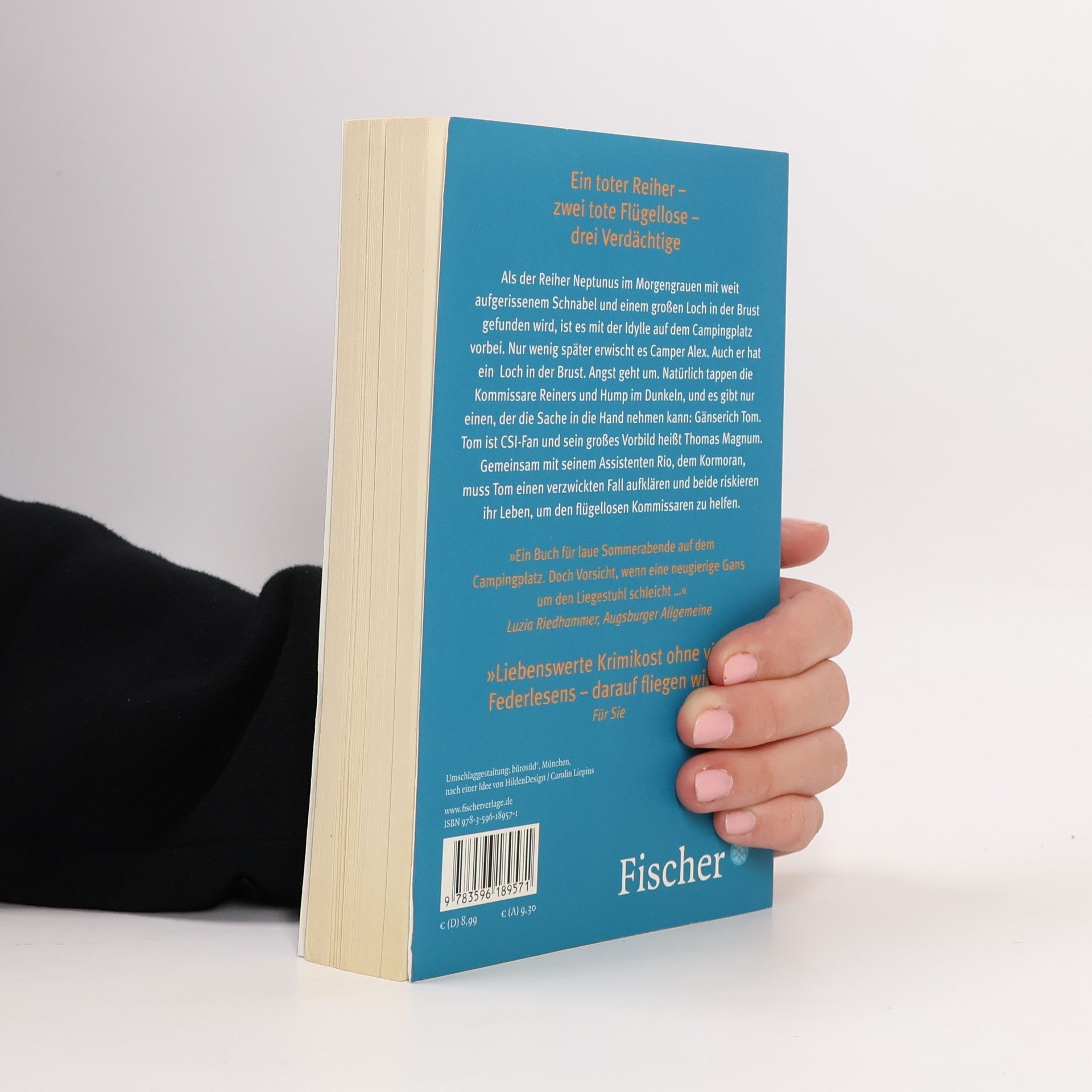 Ein toter Reiher, ein toter Kater, zwei tote Menschen – auf diesem Campingplatz geht die Angst um, denn vier Tote sind mehr, als Mensch und Tier verkraften können. Da gibt es nur einen, der die Sache in die Hand nehmen kann: Gänserich Tom. Tom ist CSI-Fan und sein großes Vorbild heißt Magnum. Thomas Magnum. Natürlich tappen die Kommissare Reiners und Hump im Dunkeln, und Tom und sein Gehilfe, der Kormoran Rio, riskieren ihr Leben, um den beiden flügellosen Polizisten zur Seite zu stehen.