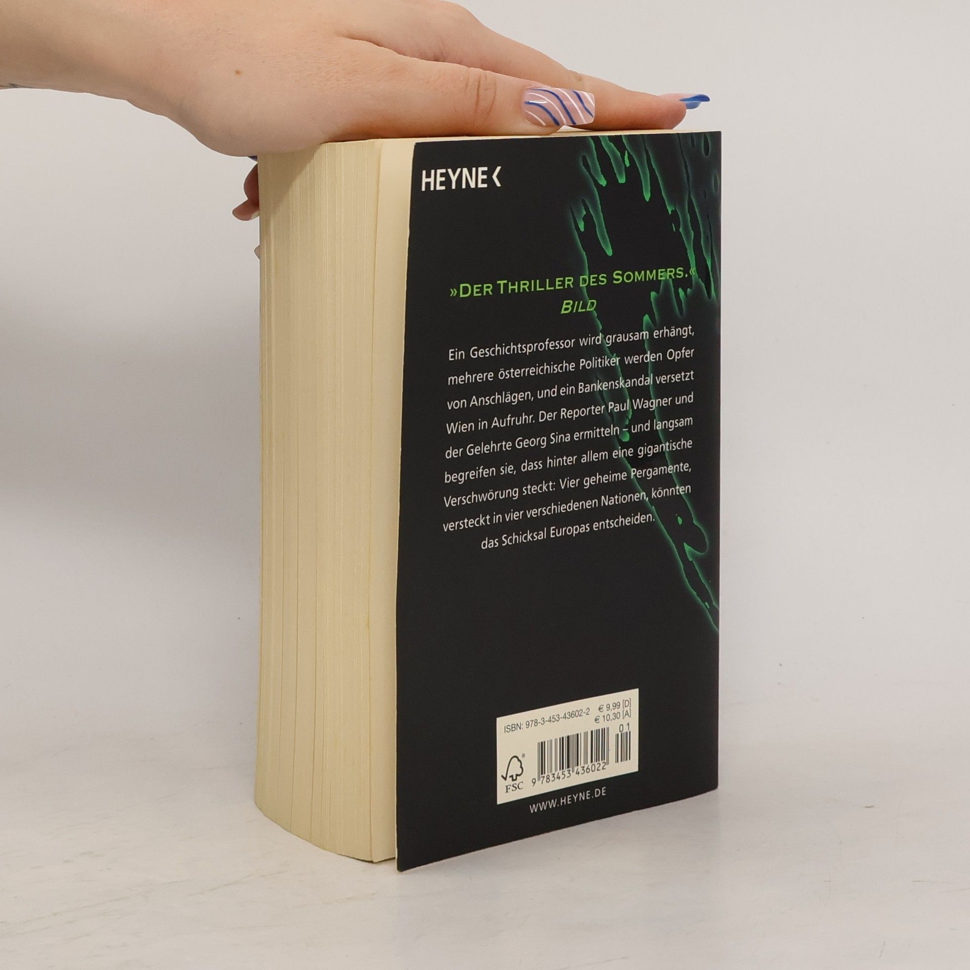 Der zweite Band der Verschwörungsthriller-Trilogie des erfolgreichen Autorenduos Schilddorfer & Weiss Ein Geschichtsprofessor wird grausam erhängt, mehrere hochrangige österreichische Politiker werden Opfer von Anschlägen und ein Bankenskandal versetzt Wien in Aufruhr. Der Reporter Paul Wagner und der Gelehrte Georg Sina ermitteln – und langsam begreifen sie, dass hinter allem eine Verschwörung steckt, die zur Zeit des Wiener Kongresses ihren Anfang nahm. Vier geheime Pergamente, versteckt in vier verschiedenen Nationen, könnten selbst nach Jahrhunderten das Schicksal Europas entscheiden.