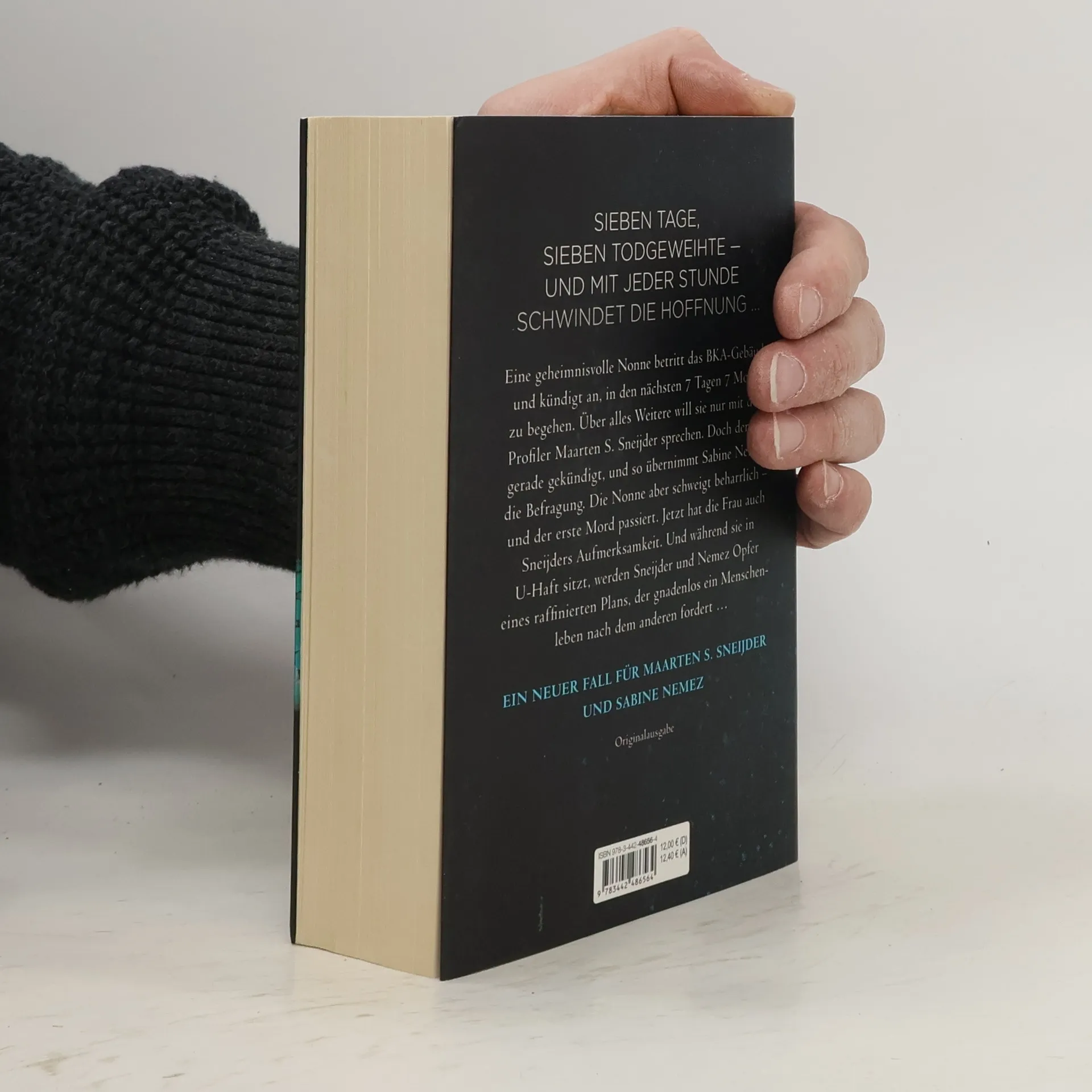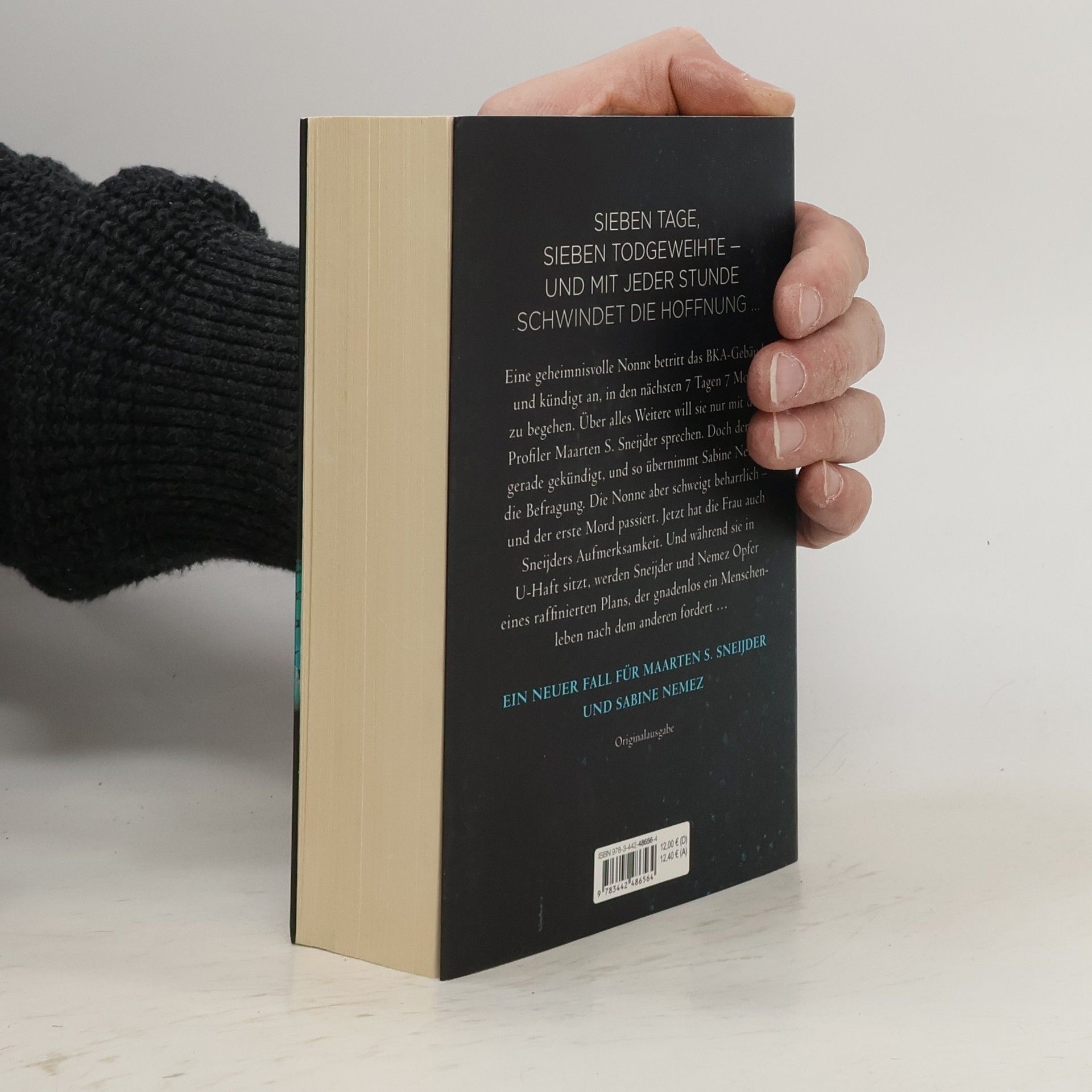 Der neue Thriller des Nr. 1 Spiegel Bestsellerautors. Der neue Fall für Sneijder und Nemez.Eine geheimnisvolle Nonne betritt das BKA-Gebäude in Wiesbaden und kündigt an, in den nächsten 7 Tagen 7 Morde zu begehen. Über alles Weitere will sie nur mit dem Profiler Maarten S. Sneijder sprechen. Doch der hat gerade gekündigt, und so befragt Sneijders Kollegin Sabine Nemez die Nonne. Aber die schweigt beharrlich – und der erste Mord passiert. Jetzt hat sie auch Sneijders Aufmerksamkeit. Und während die Nonne in U-Haft sitzt, werden Sneijder und Nemez Opfer eines raffinierten Plans, der gnadenlos ein Menschleben nach dem anderen fordert und dessen Ursprung in einer grausamen, dunklen Vergangenheit liegt … Der fünfte Fall für Sneijder und Nemez.
