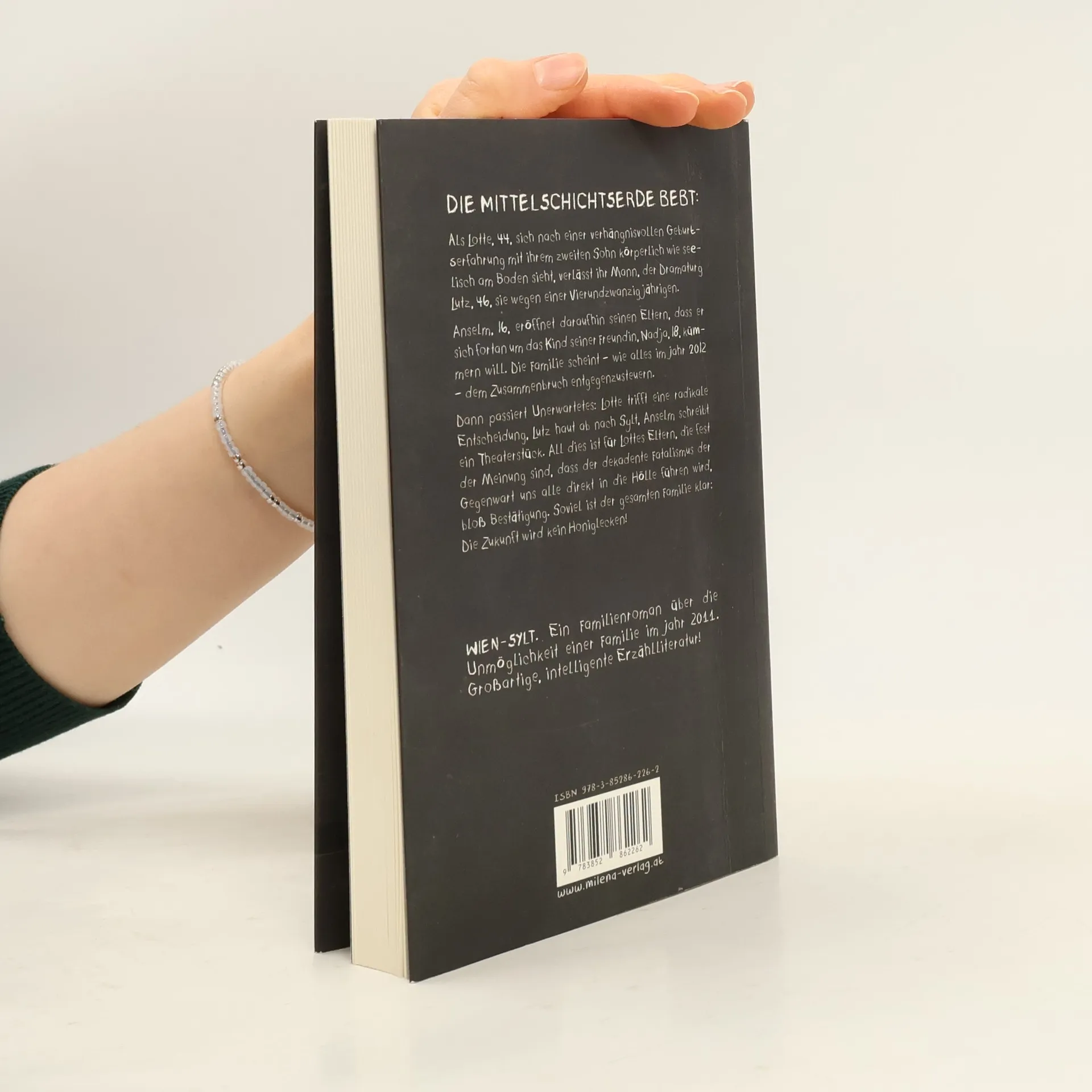 Die Mittelschichtserde bebt: Als Lotte, 44, sich nach einer verhängnisvollen Geburtserfahrung mit ihrem zweiten Sohn körperlich wie seelisch am Boden sieht, verlässt ihr Mann, der Dramaturg Lutz, 46, sie wegen einer Vierundzwanzigjährigen. Anselm, 16, eröffnet daraufhin seinen Eltern, dass er sich fortan um das Kind seiner Freundin, Nadja, 18, kümmern will. Die Familie scheint – wie alles im Jahr 2012 – dem Zusammenbruch entgegenzusteuern. Dann passiert Unerwartetes: Lotte trifft eine radikale, nachhaltige Entscheidung, Lutz sagt Burn Out und haut ab nach Sylt, Anselm schreibt ein vielversprechendes Theaterstück. All dies ist für Lottes Eltern, die fest der Meinung sind, dass der dekadente Fatalismus der Gegenwart uns alle direkt in die Hölle führen wird, bloß Bestätigung. Soviel ist der gesamten Familie klar: Die Zukunft wird kein Honiglecken! Wien-Sylt. Ein Familienroman über die Unmöglichkeit einer Familie im Jahr 2012. Großartige, intelligente Erzählliteratur!