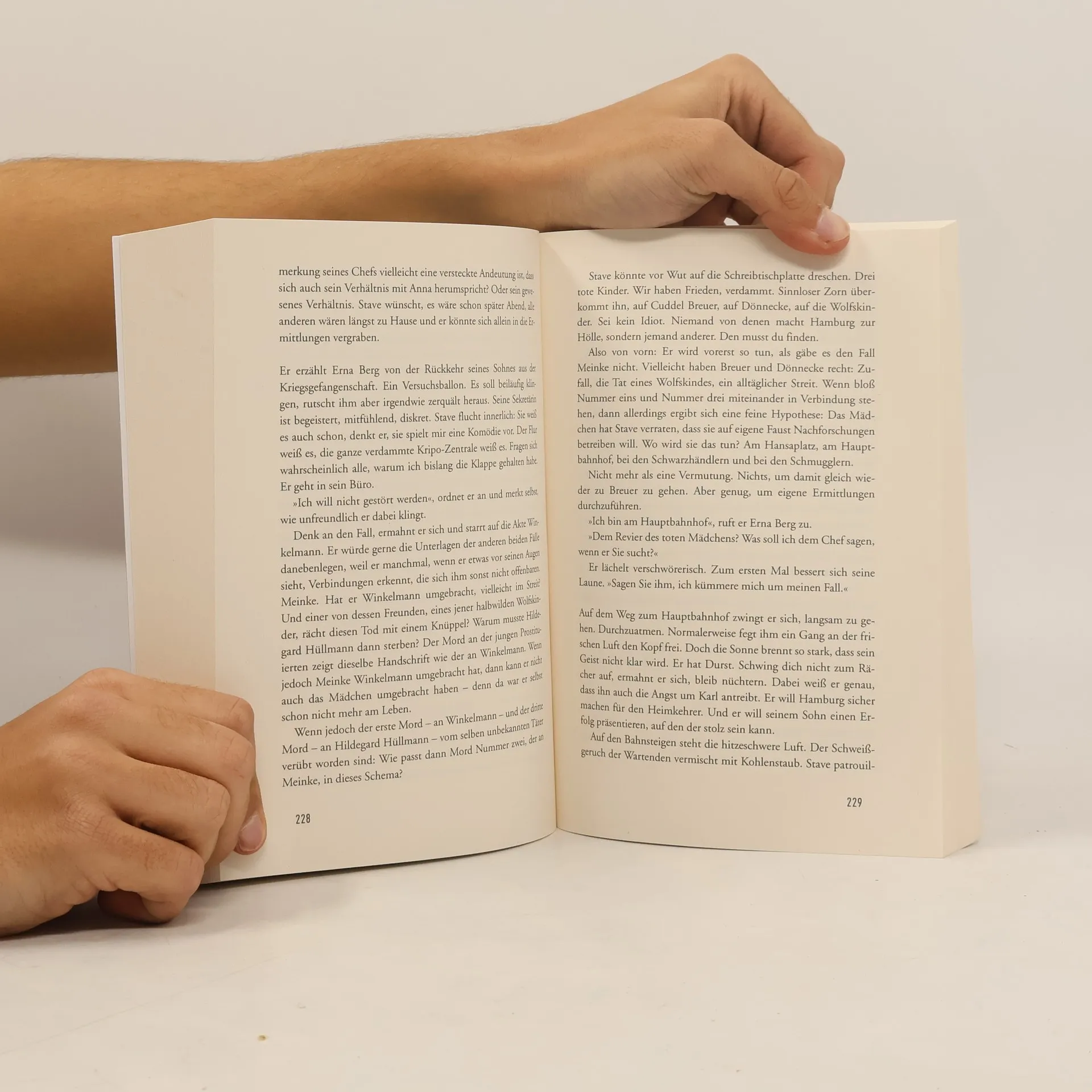 Kommissar Staves zweiter Fall Hamburg 1947: Es ist das Jahr der Extreme. Nach dem bitterkalten Hungerwinter stöhnt die zerbombte Stadt schon im Frühling unter quälender Hitze. Und Oberinspektor Frank Stave wird mit einem neuen Fall konfrontiert. In den Ruinen einer Werft wird die Leiche eines Jungen gefunden. Zusammen mit Lieutenant MacDonald und Doktor Czrisini macht sich Stave auf die Suche nach dem Mörder, und die Ermittlungen führen sie in die Welt der »Wolfskinder« – jener elternlosen Kinder, die aus den besetzten Ostgebieten geflohen sind und sich nun zu Banden vereint als Kohlenklauer, Prostituierte und Schmuggler durchschlagen. Doch nicht nur beruflich sieht Frank Stave sich vor Rätsel gestellt: Mitten in den Untersuchungen steht plötzlich sein Sohn vor der Tür, der aus der russischen Kriegsgefangenschaft zurückgekehrt ist. Ein schmerzhafter Weg der Annäherung liegt vor ihnen, während Stave zugleich um den Erhalt der Beziehung zu seiner Geliebten Anna kämpft. Als zwei weitere Leichen entdeckt werden, gerät Stave zunehmend unter Druck. In einer dramatischen Nacht im Hafen soll sich schließlich entscheiden, ob Stave den Täter zu fassen bekommt …