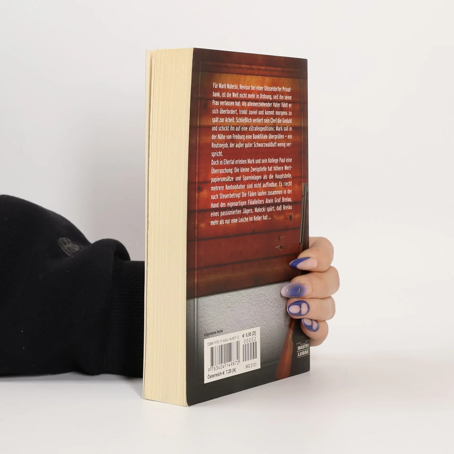 Ein Routinejob wird zur tödlichen GefahrFür den Bankrevisor Mark Malecki ist die Welt nicht mehr in Ordnung, seit ihn seine Frau verlassen hat. Als alleinerziehender Vater fühlt er sich überfordert, trinkt zu viel und kommt morgens zu spät zur Arbeit. Als ihn sein Chef auf eine "Strafexpedition" in die Nähe von Freiburg schickt, erwartet er gute Schwarzwaldluft - und einen Routinejob. Doch in Ellertal erlebt Mark eine Ü Die Zweigstelle hat höhere Wertpapierumsätze und Spareinlagen als die Hauptstelle; mehrere Kontoinhaber sind nicht auffindbar. Es riecht nach Steuerbetrug! Die Fäden laufen zusammen in der Hand des eigenartigen Filialleiters Alwin Graf Brelau, eines passionierten Jägers. Malecki spürt, dass Brelau mehr als nur eine Leiche im Keller hat..