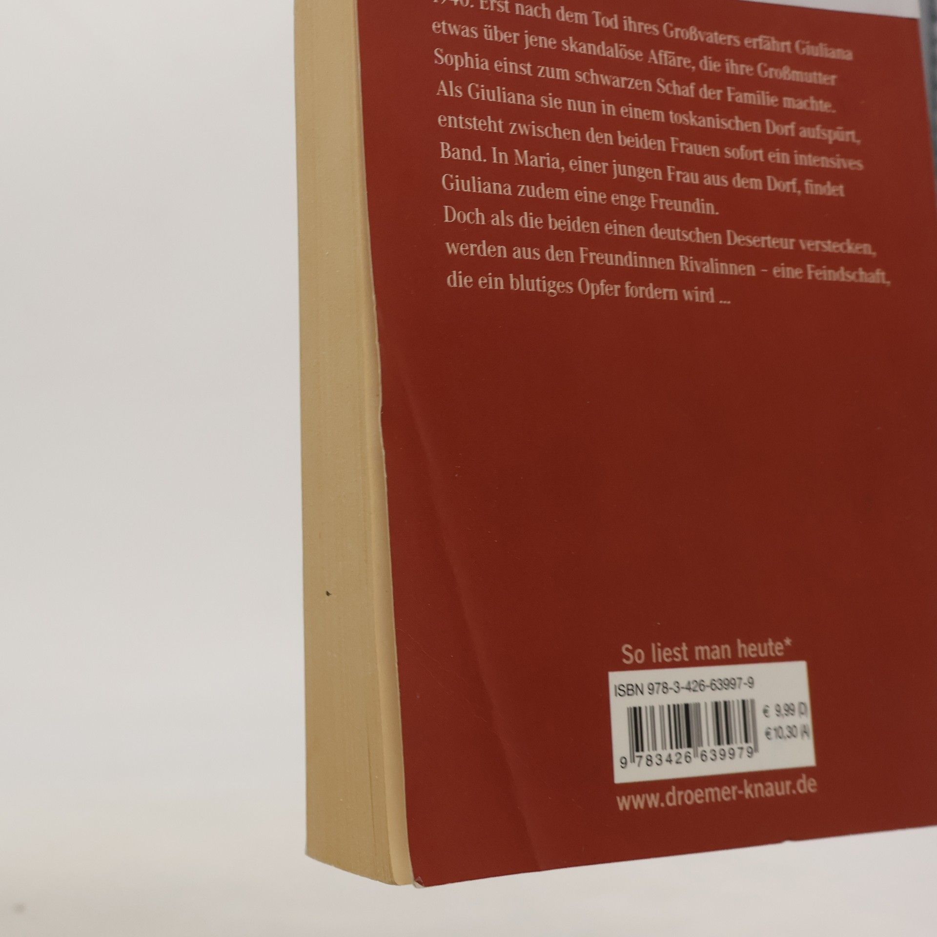 1940: Erst nach dem Tod ihres Großvaters erfährt Giuliana etwas über jene skandalöse Affäre, die ihre Großmutter Sophia einst zum schwarzen Schaf der Familie machte. Als Giuliana sie nun in einem toskanischen Dorf aufspürt, entsteht zwischen den beiden Frauen sofort ein intensives Band. In Maria, einer jungen Frau aus dem Dorf, findet Sophia zudem eine enge Freundin. Doch als die beiden einen deutschen Deserteur verstecken, werden aus den Freundinnen Rivalinnen – eine Feindschaft, die ein blutiges Opfer fordern wird …
