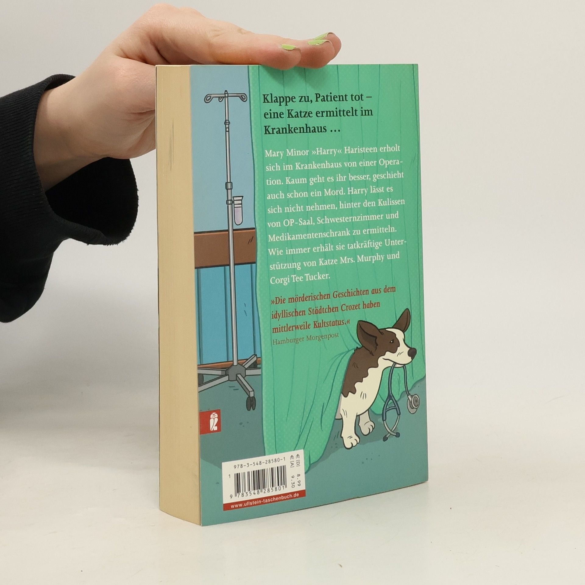 Mary Minor »Harry« Haristeen erholt sich im Krankenhaus von einer Operation. Kaum geht es ihr besser, geschieht auch schon ein Mord. Harry lässt es sich nicht nehmen, hinter den Kulissen von OP-Saal, Schwesternzimmer und Medikamentenschrank zu ermitteln. Wie immer erhält sie tatkräftige Unterstützung von Katze Mrs. Murphy und Corgi Tee Tucker.
