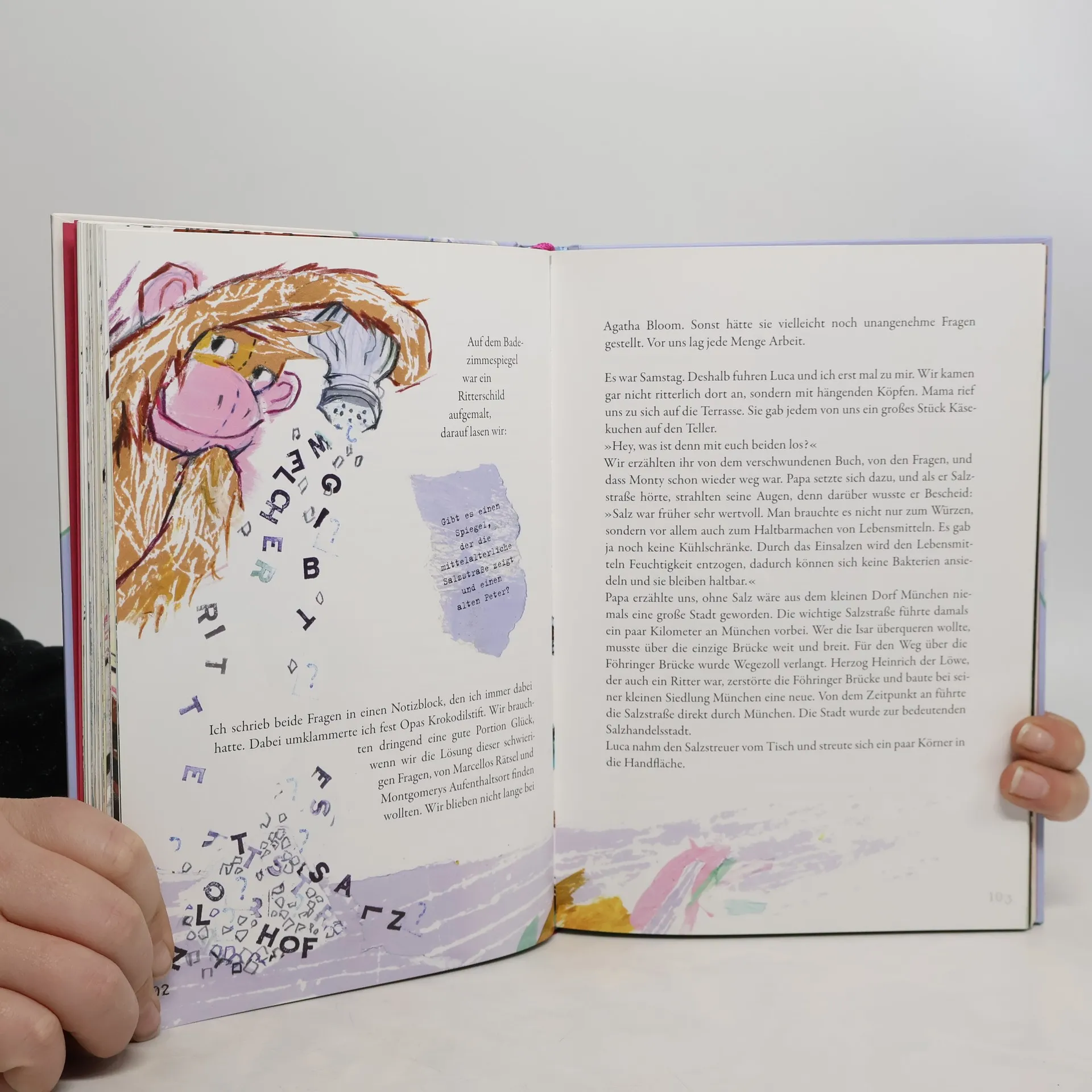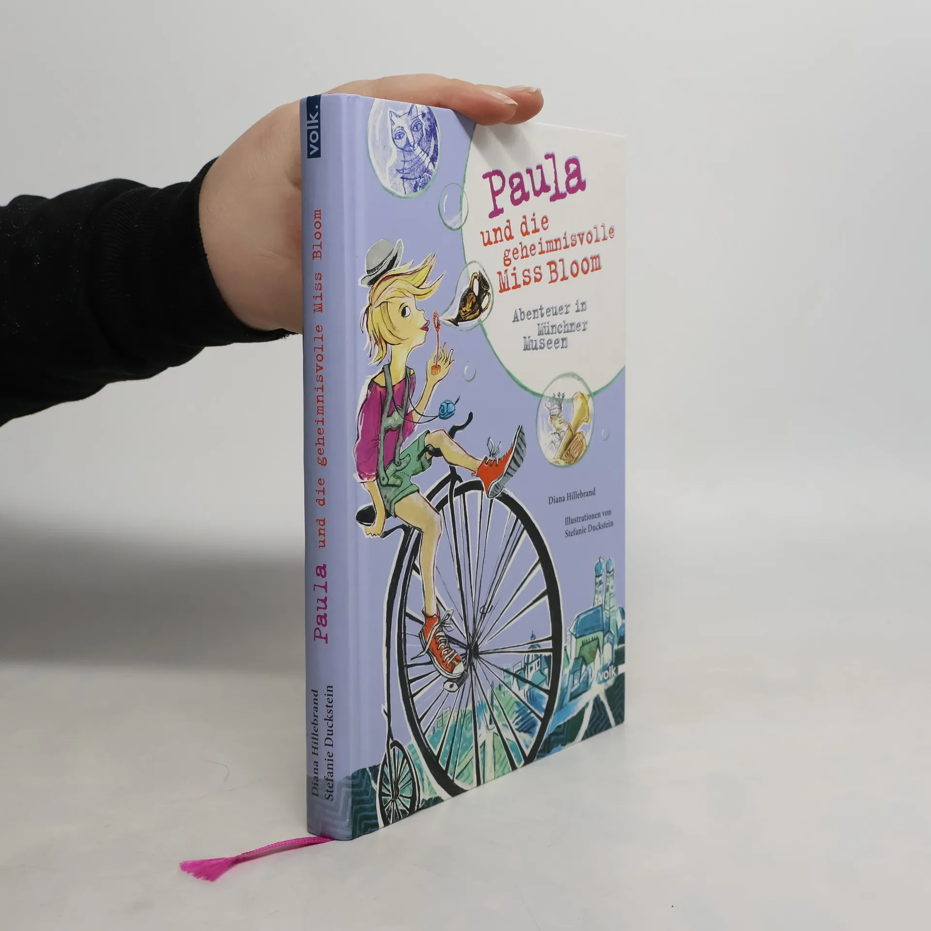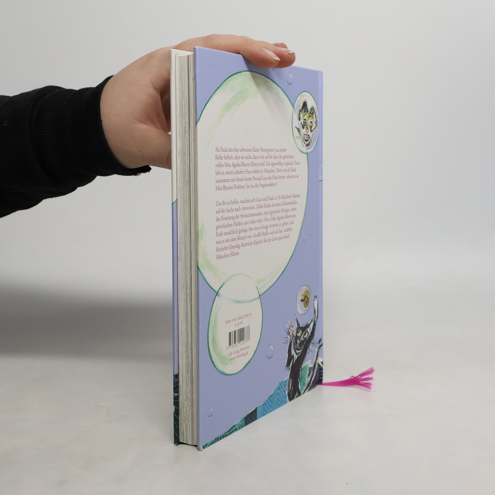 Eine geheimnisvolle Botschaft und der schwarze Kater Montgomery, den Paula aus einer verzwickten Lage befreit, scheinen zunächst nichts miteinander zu tun zu haben. Doch dann trifft Paula Miss Bloom, die inmitten von Fragen lebt. Sie kleben an Schränken, stecken in Blumenkästen und stehen sogar auf dem Toilettenpapier. Miss Bloom hat die Fragekrankheit und nur Paula und ihr Freund Luca können ihr helfen! Die Münchner Museen bilden den Hintergrund einer aufregenden Jagd nach Antworten, die Paula und Luca auch in einen echten Elefantenkeller, ein fast echtes Bergwerk und zu einer ausgebrannten Münchner U-Bahn führt. Paula und Luca erleben eine abenteuerliche Zeitreise durch die faszinierende Welt der Münchner Museen. Und am Ende bleiben keine Fragen mehr offen. Nach dem Tierpark Hellabrunn, der im Zentrum des erfolgreichen ersten Bandes stand, schickt die Kinderbuchautorin Diana Hillebrand ihre ebenso neugierige wie tierliebe Heldin Paula in einem neuen, in sich abgeschlossenen Abenteuer in 18 verschiedene Münchner Museen: So spürt sie nicht nur die Dinosaurier in der Paläontologischen Staatssammlung auf, sondern auch Karl Valentis Winterzahnstocher in seinem „Musäum“. Stefanie Duckstein liefert auch diesmal wieder die frechen und lebendigen Illustrationen in aufwendiger Collagentechnik.
