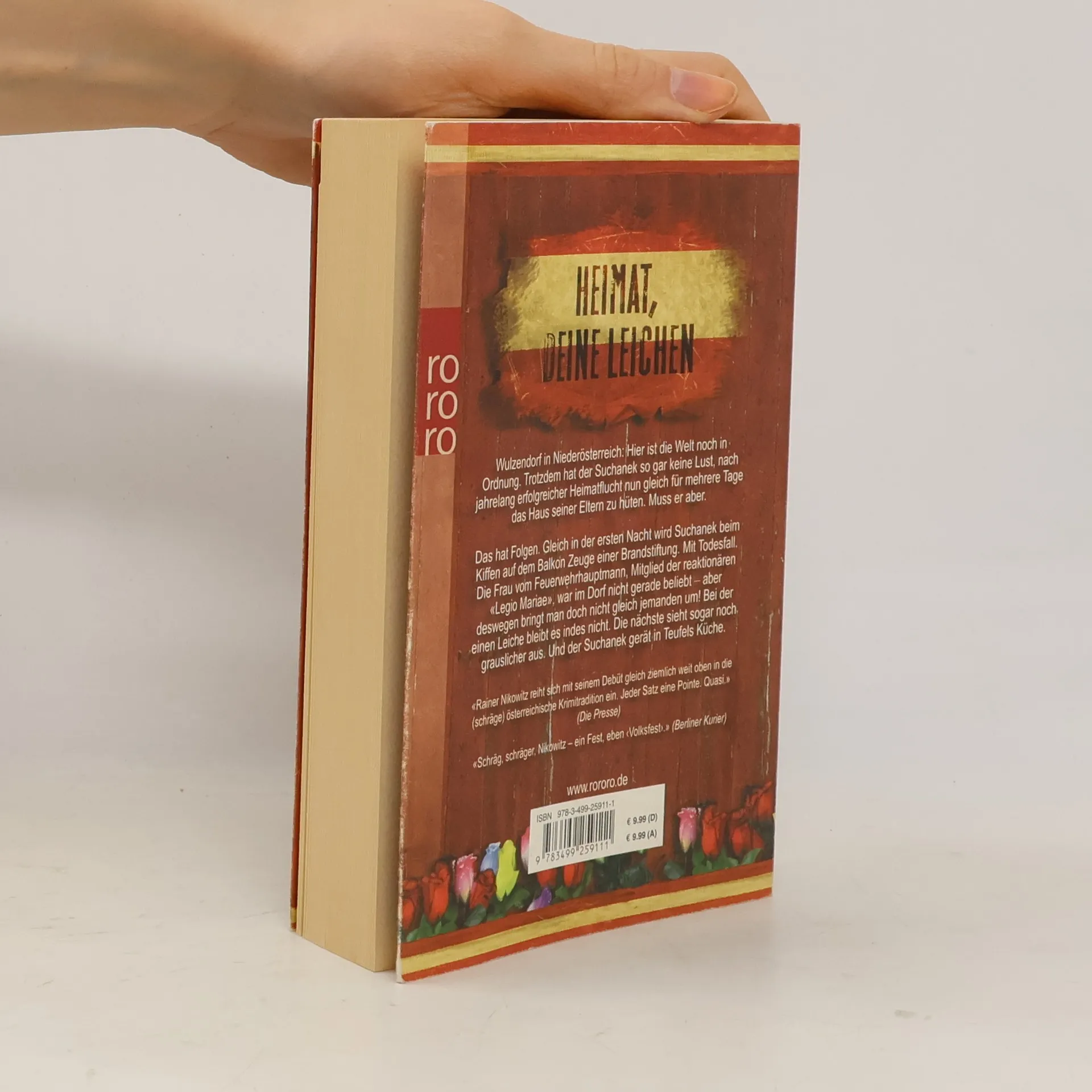 Heimat, deine Leichen.Wulzendorf in Niederösterreich: Hier ist die Welt noch in Ordnung. Trotzdem hat der Suchanek so gar keine Lust, nach jahrelang erfolgreicher Heimatflucht nun gleich für mehrere Tage das Haus seiner Eltern zu hüten. Muss er aber.Das hat Folgen. Gleich in der ersten Nacht wird Suchanek beim Kiffen auf dem Balkon Zeuge einer Brandstiftung. Mit Todesfall. Die Frau vom Feuerwehrhauptmann, Mitglied der reaktionären «Legio Mariae», war im Dorf nicht gerade beliebt – aber deswegen bringt man doch nicht gleich jemanden um! Bei der einen Leiche bleibt es indes nicht. Die nächste sieht sogar noch grauslicher aus. Und der Suchanek gerät in Teufels Küche.