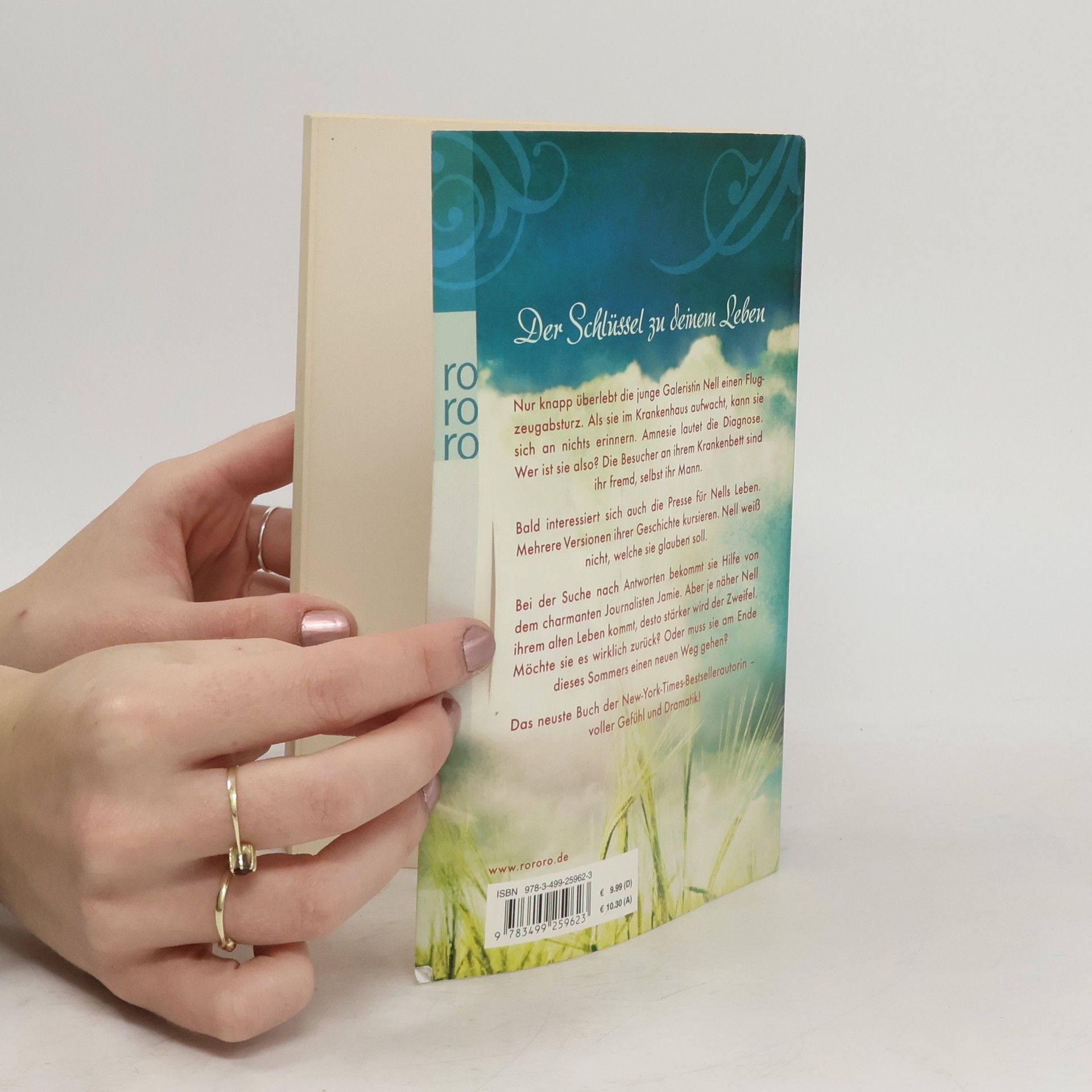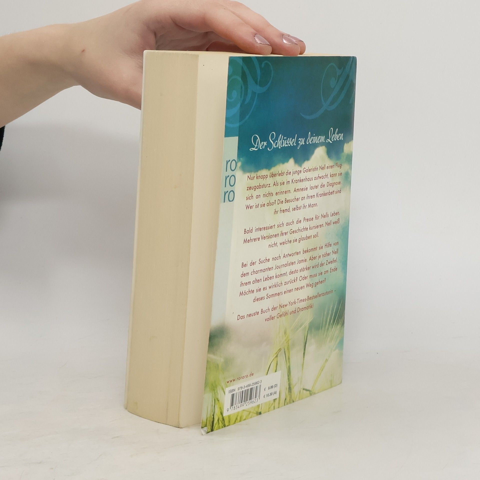 Der Schlüssel zu deinem Leben. Nur knapp überlebt die junge Galeristin Nell einen Flugzeugabsturz. Als sie im Krankenhaus aufwacht, kann sie sich an nichts erinnern. Amnesie lautet die Diagnose. Wer ist sie also? Die Besucher an ihrem Krankenbett sind ihr fremd, selbst ihr Mann. Bald interessiert sich auch die Presse für Nells Leben. Mehrere Versionen ihrer Geschichte kursieren. Nell weiß nicht, welche sie glauben soll. Bei der Suche nach Antworten bekommt sie Hilfe von dem charmanten Journalisten Jamie. Aber je näher Nell ihrem alten Leben kommt, desto stärker wird der Zweifel. Möchte sie es wirklich zurück? Oder muss sie am Ende dieses Sommers einen neuen Weg gehen? Das neuste Buch der New-York-Times-Bestsellerautorin - voller Gefühl und Dramatik!