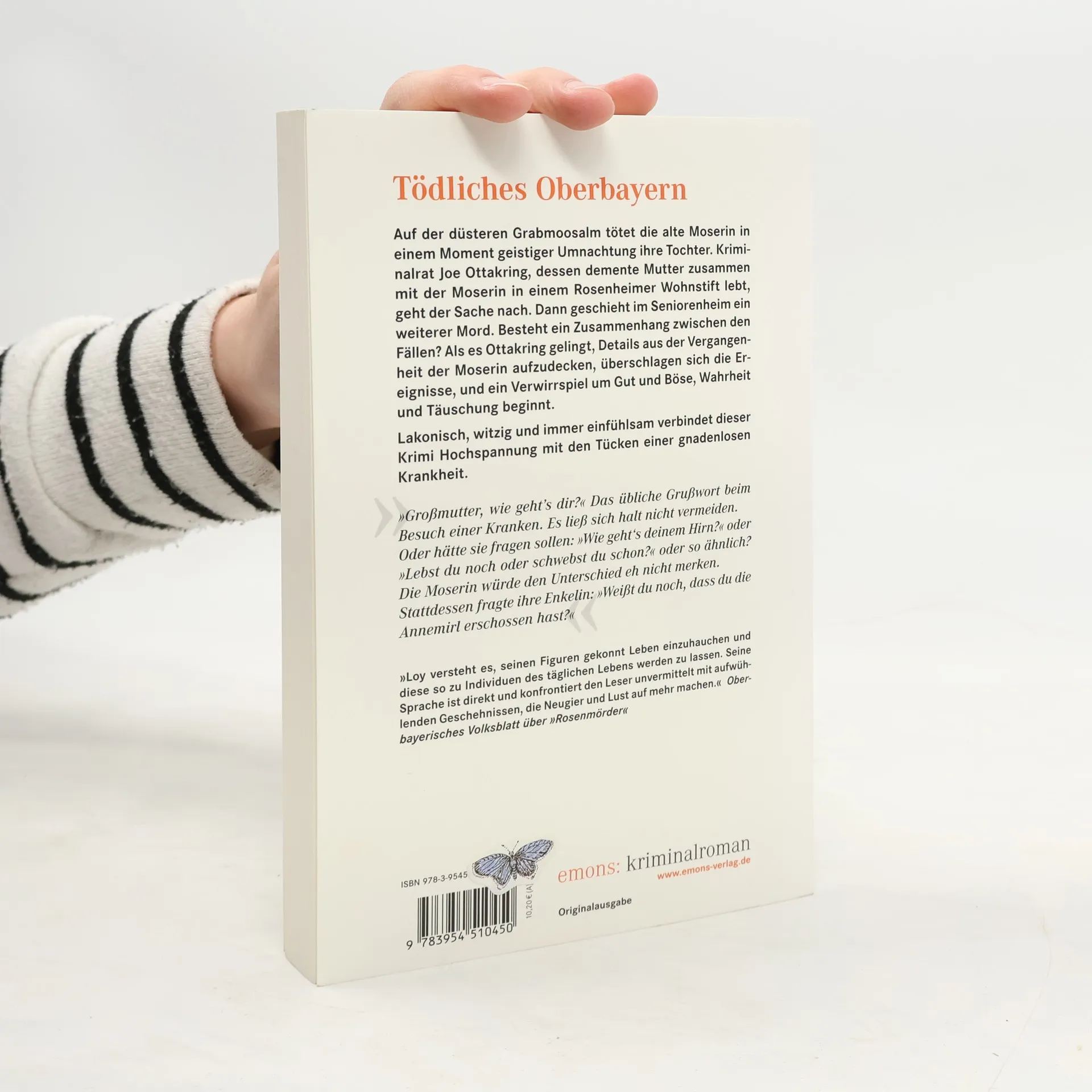 Auf der düsteren Grabmoosalm tötet die alte Moserin in einem Moment geistiger Umnachtung ihre Tochter. Kriminalrat Joe Ottakring, dessen demente Mutter zusammen mit der Moserin in einem Rosenheimer Wohnstift lebt, geht der Sache nach. Dann geschieht im Seniorenheim ein weiterer Mord. Besteht ein Zusammenhang zwischen den Fällen? Als es Ottakring gelingt, Details aus der Vergangenheite der Moserin aufzudecken, überschlagen sich die Ereignisse, und ein Verwirrspiel um Gut und Böse, Wahrheit und Täuschung beginnt.
