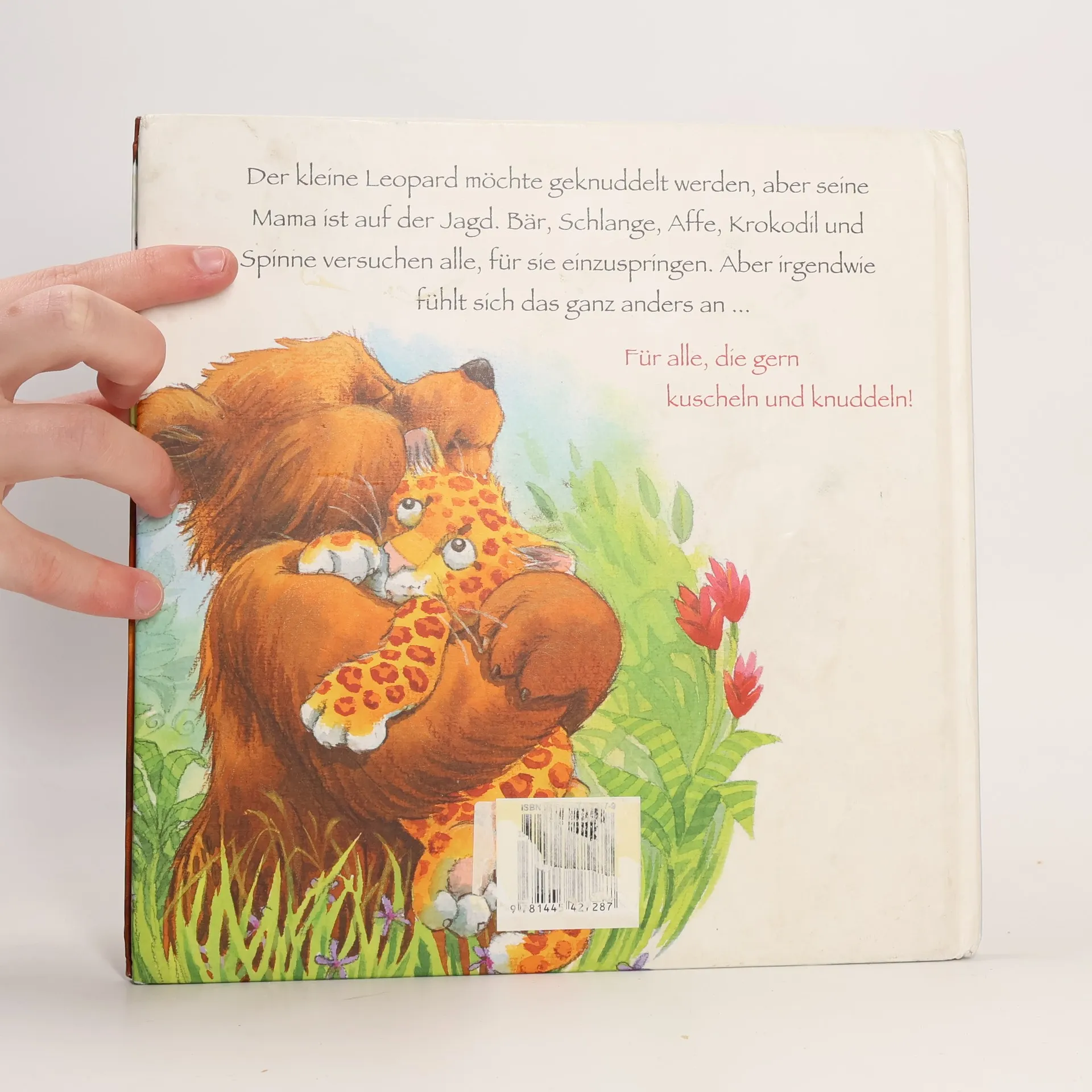 Ein Buch für alle, die gern kuscheln und knuddeln. Der kleine Leopard möchte geknuddelt werden, aber seine Mama ist auf der Jagd. Bär, Schlange, Affe, Krokodil und Spinne versuchen alle, für sie einzuspringen. Aber irgendwie fühlt sich das ganz anders an ...