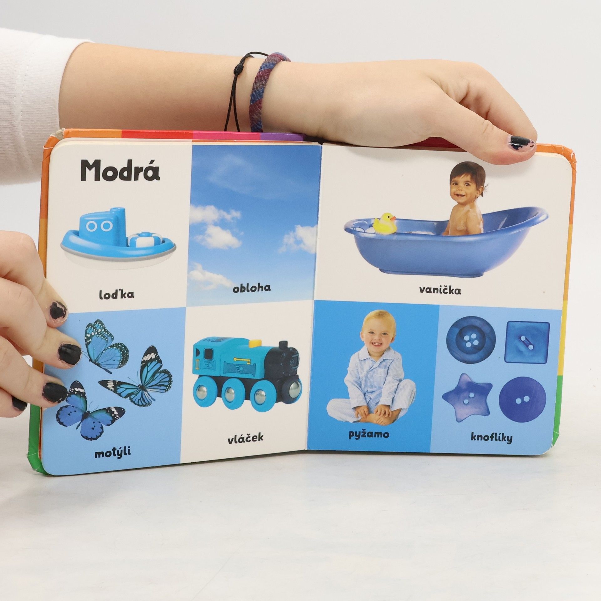 Tato knížka obsahuje základní slovní zásobu pro pojmenování barev. Slova jsou doplněna názornými fotografiemi. Díky měkké obálce a oblým rohům představuje ideální první knihu pro nejmenší děti a batolata.
