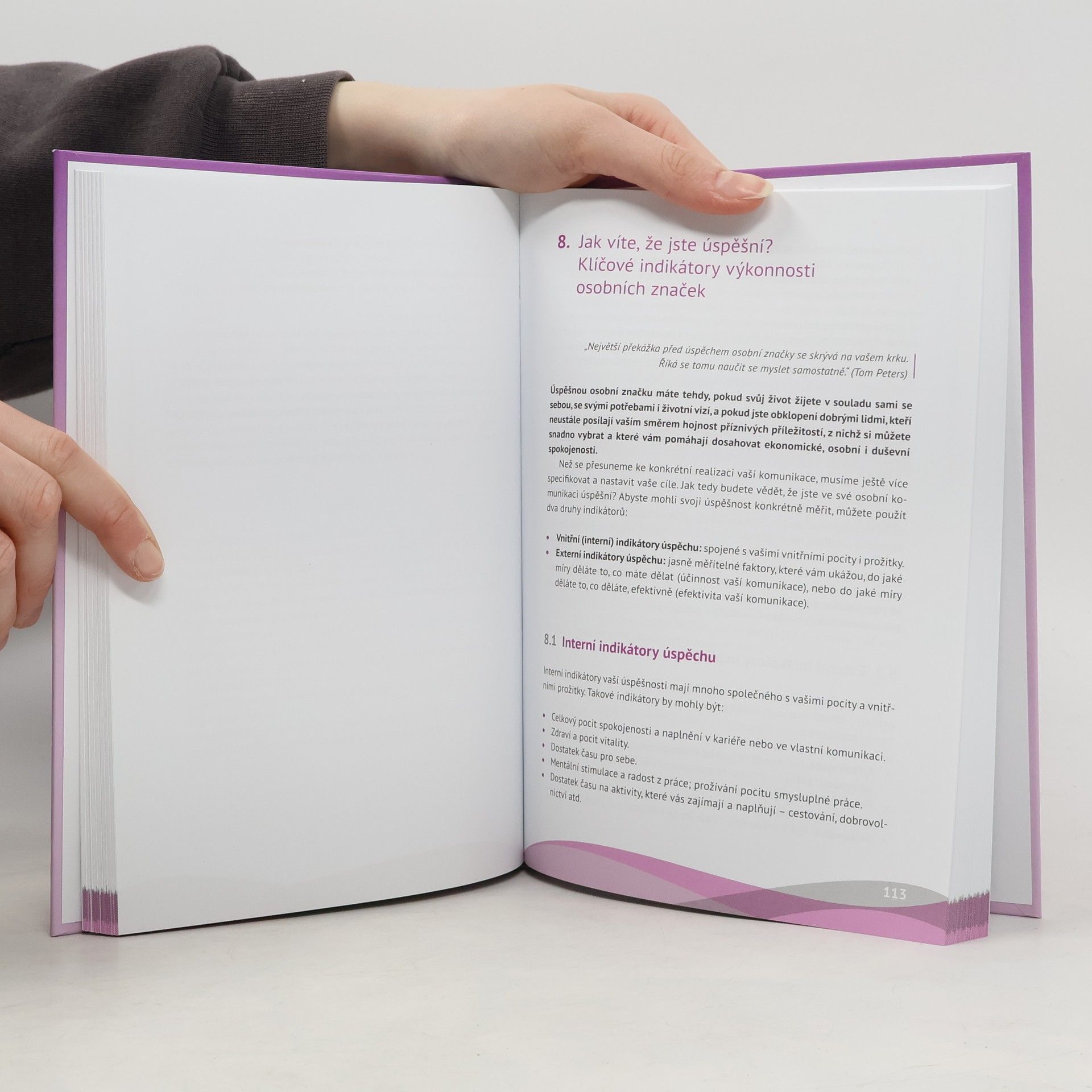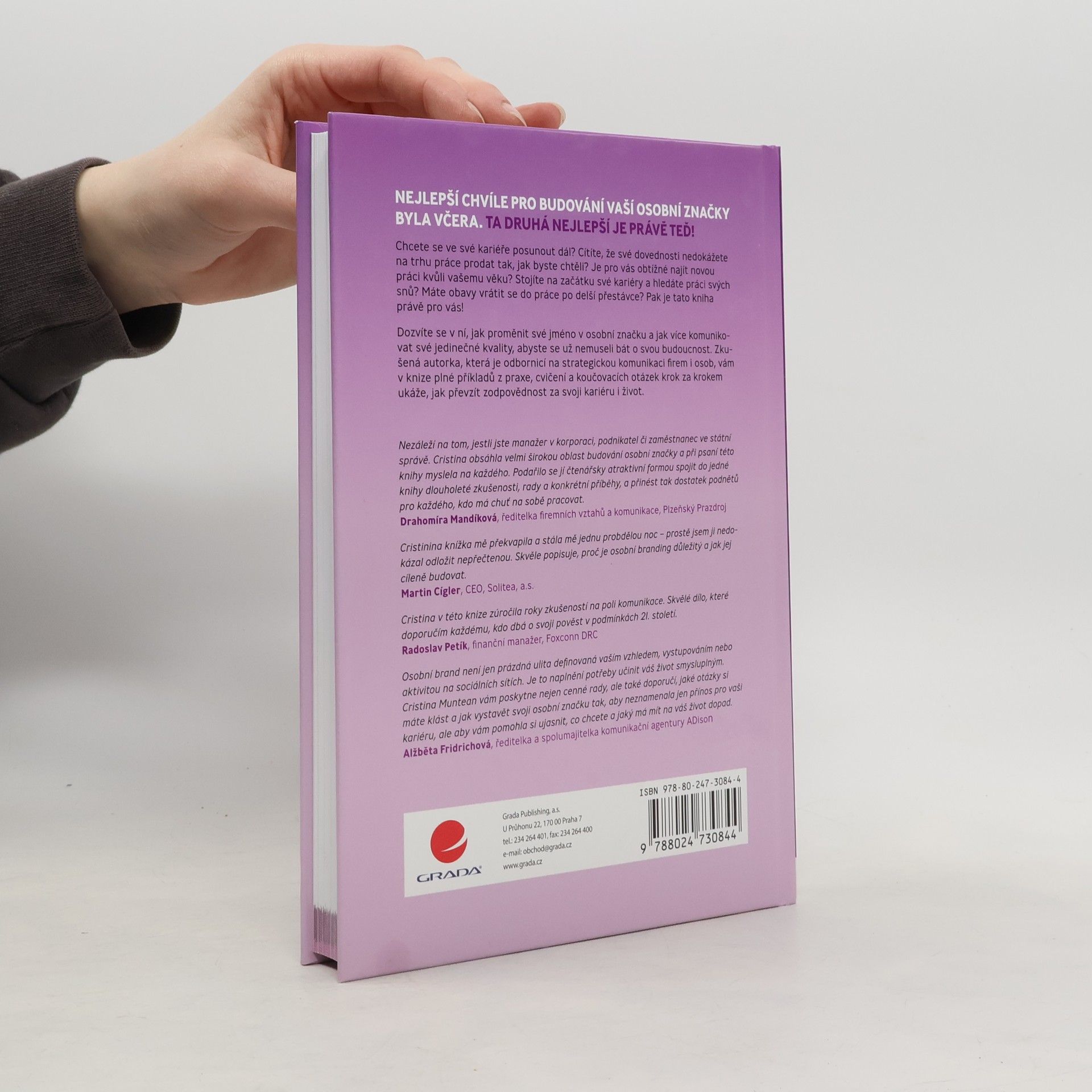 Nejlepší chvíle pro budování vaší osobní značky byla včera. Ta druhá nejlepší je právě teď! Chcete se ve své kariéře posunout dál? Cítíte, že své dovednosti nedokážete na trhu práce prodat tak, jak byste chtěli? Je pro vás obtížné najít novou práci kvůli vašemu věku? Stojíte na začátku své kariéry a hledáte práci svých snů? Máte obavy vrátit se do práce po delší přestávce? Pak je tato kniha právě pro vás!