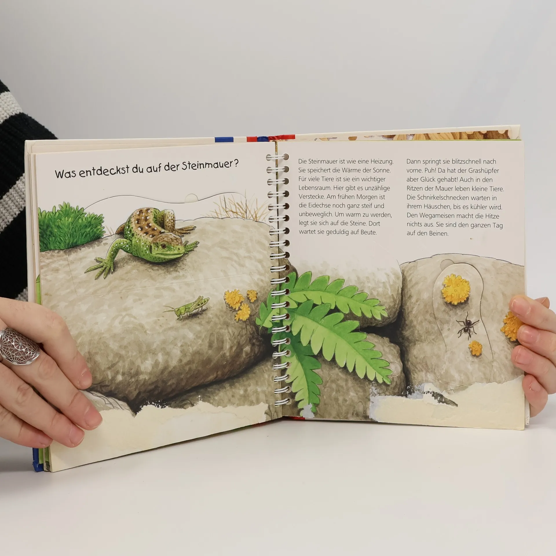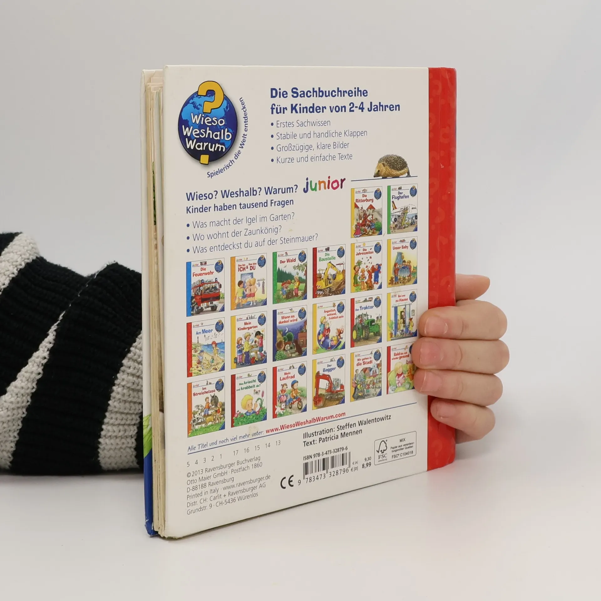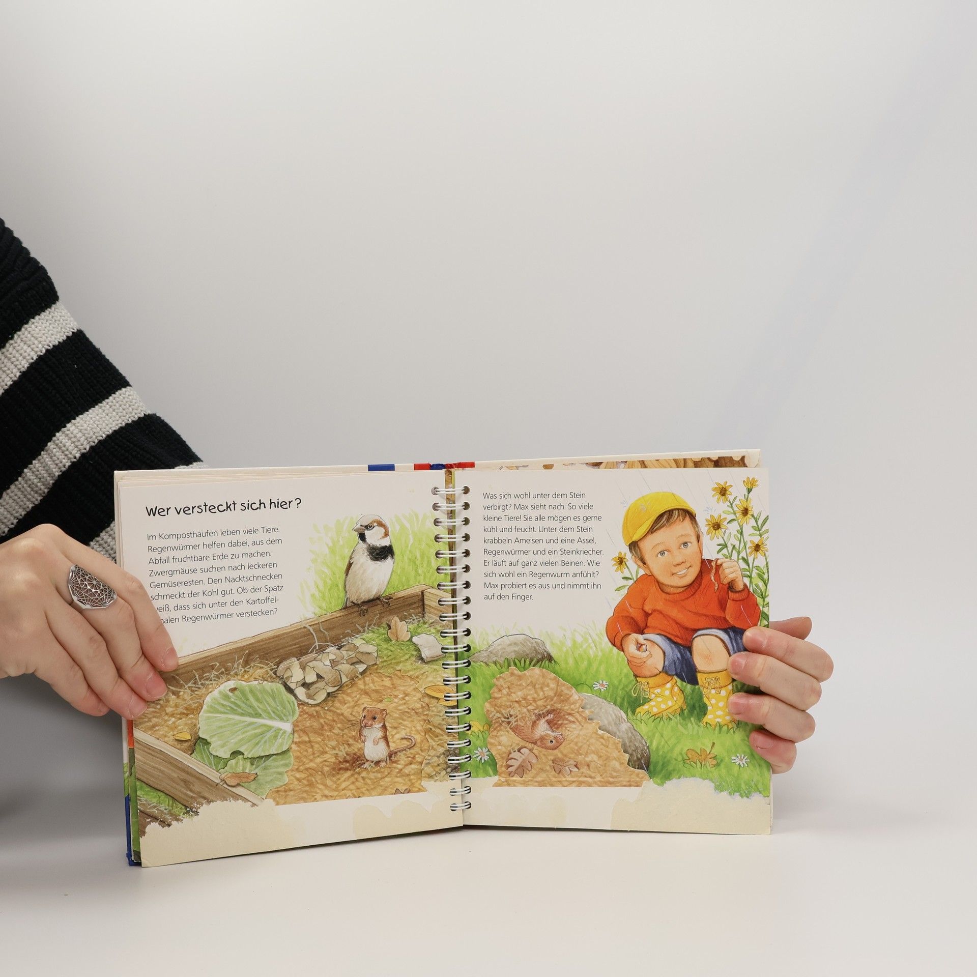 Hier summt und brummt es gewaltig! Dieses Buch nimmt kleine Naturforscher mit auf eine Entdeckungstour durch den Garten, bei der es allerlei zu sehen gibt: Wer versteckt sich hinter dem Efeu? Wo wohnt die Maus? Welche Tiere tummeln sich im Kompost? Und was frisst der Igel am liebsten? Mit spannenden Bewegungsklappen schauen wir der Eidechse beim Beutefang zu, erkunden das Nest des Zaunkönigs, und beobachten, wie Biene und Hummel Blütenstaub sammeln. Wieso? Weshalb? Warum? junior Die Sachbuchreihe für Kinder von 2-4 Jahren Jeden Tag entdecken Kinder etwas Neues – und haben viele Fragen. Wann kommt die Feuerwehr? Was machen die Tiere im Winter? Warum muss ich Zähne putzen? Die beliebte Sachbuchreihe Wieso? Weshalb? Warum? junior beantwortet die Fragen der Kinder auf Augenhöhe. Sie beleuchtet unterschiedlichste Themen aus ihrer Alltags- und Interessenswelt altersgerecht und mit viel Liebe zum Detail. Die Reihe ist speziell auf kleine Hände und die Bedürfnisse der Kleinsten angepasst. Klare und liebevolle Bilder, kurze Sachtexte sowie handliche Klappen, die Bewegungen veranschaulichen und überraschende und lustige Einblicke gewähren, ermöglichen Kindern, sich ihre Themen selbst zu erschließen. Der Spaß am eigenhändigen Entdecken, die liebevolle Umsetzung und die hochwertige Ausstattung garantieren langanhaltende Freude an jedem Buch.