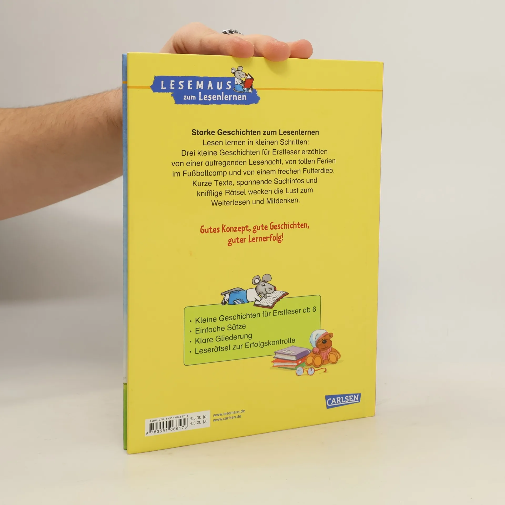 Lesen lernen in kleinen Schritten: Drei kleine Geschichten für Erstleser erzählen von einer neuen Brille, von tollen Ferien im Fußballcamp und von einem frechen Futterdieb. Kurze Texte, spannende Sachinfos und knifflige Rätsel wecken die Lust zum Weiterlesen und Mitdenken. Gutes Konzept, gute Geschichten, guter Lernerfolg! Enthält folgende Geschichten: Marie ist keine Brillenschlange, David im Fußballcamp, Conni und der Frechdachs