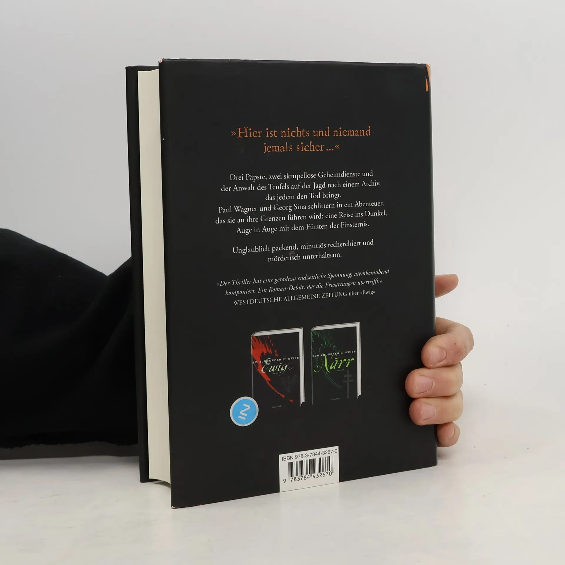 „Hier ist nichts und niemand jemals sicher ...” Drei Päpste, zwei skrupellose Geheimdienste und der Anwalt des Teufels auf der Jagd nach einem Archiv, das jedem den Tod bringt. Paul Wagner und Georg Sina schlittern in ein Abenteuer, das sie an ihre Grenzen führen wird: eine Reise ins Dunkel, Auge in Auge mit dem Fürsten der Finsternis. Unglaublich packend, minutiös recherchiert und mörderisch unterhaltsam.