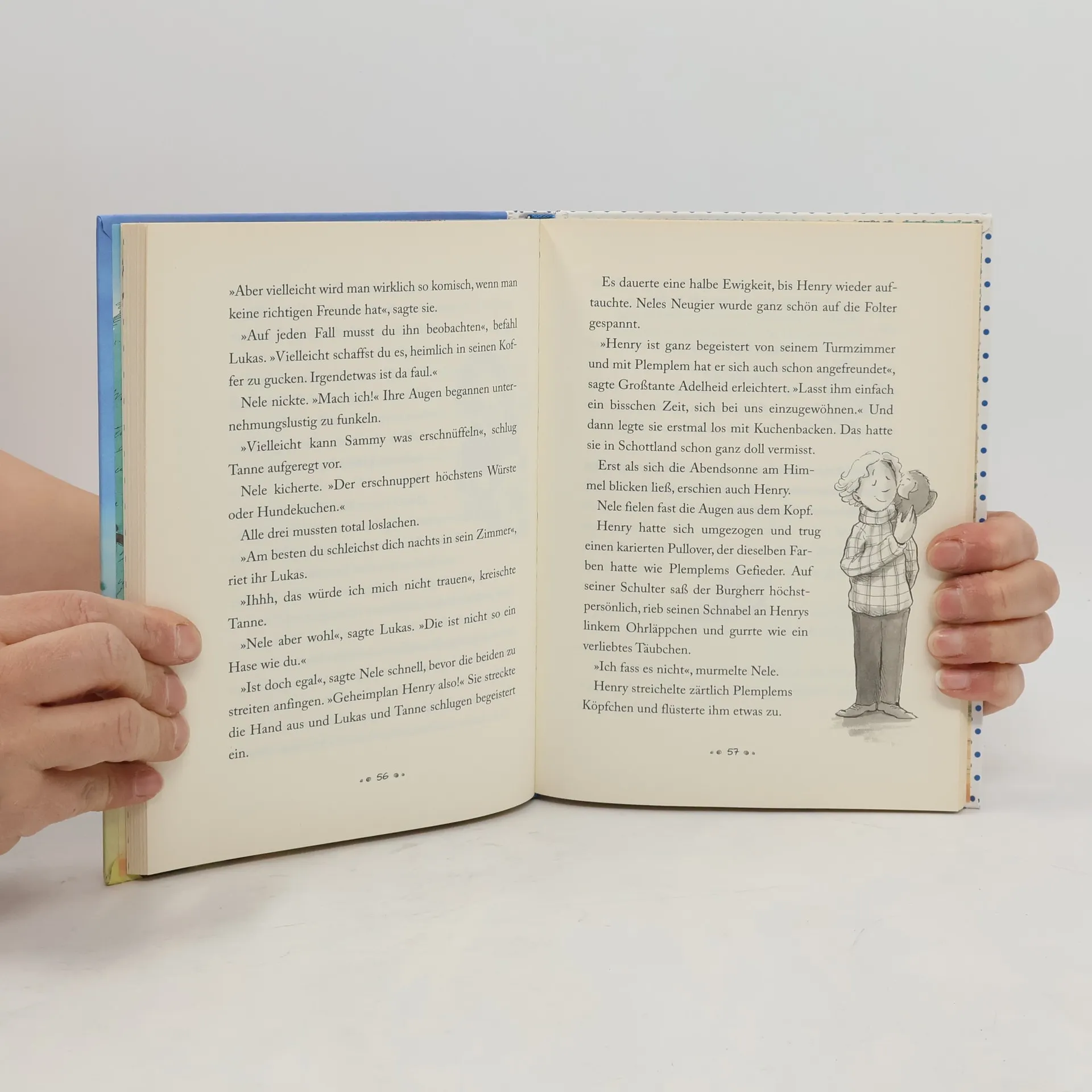 Lustige Abenteuer aus dem Kinderalltag Großtante Adelheid hat wichtige Neuigkeiten für Familie Winter! Sie bekommen vorübergehend Familienzuwachs. Henry, der Sohn ihrer schottischen Freunde, wird für zwei Wochen bei ihnen wohnen und Neles Klasse besuchen. Nele ist superneugierig auf Henry – vielleicht kann er ihr alles über schottische Seeungeheuer erzählen. Als Henry dann angereist kommt, stellt Nele fest, dass Henry ganz schön eingebildet bis. Doch dann zeigt Henry plötzlich, was wirklich in ihm steckt! Ausstattung: Mit s/w Illustrationen