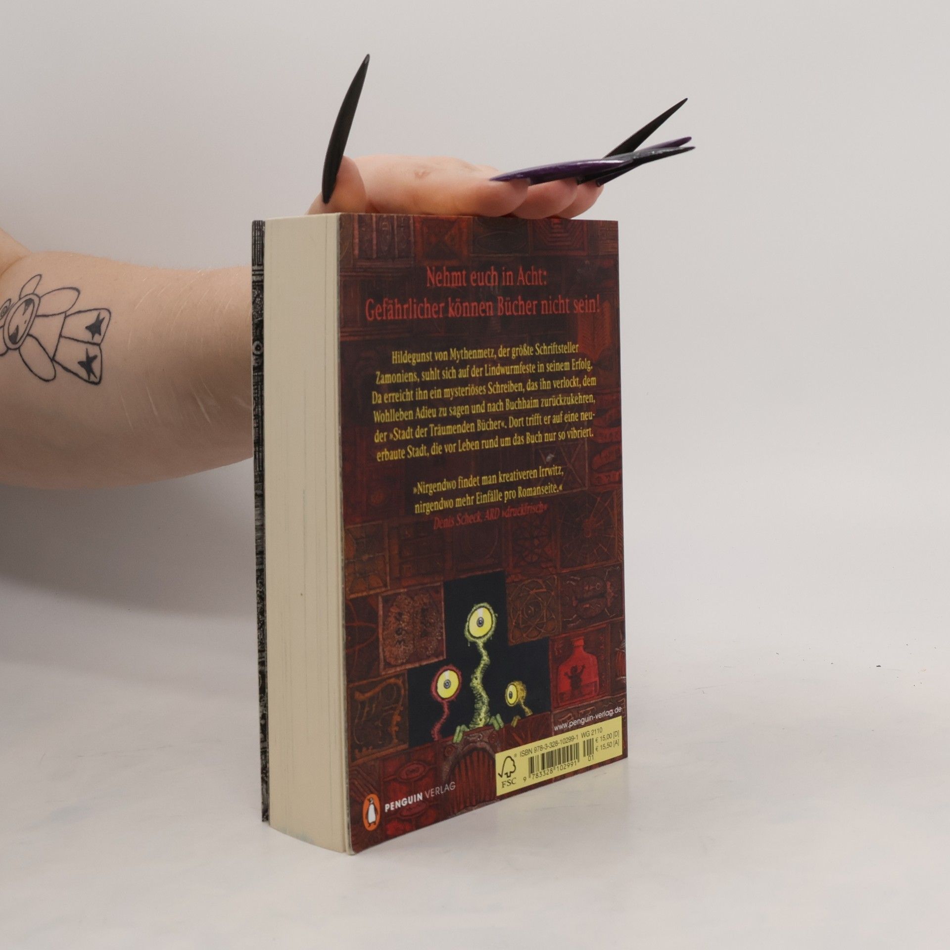 Nehmt euch in Acht: Gefährlicher können Bücher nicht sein! Hildegunst von Mythenmetz, der größte Schriftsteller Zamoniens, suhlt sich auf der Lindwurmfeste in seinem Erfolg. Da erreicht ihn ein mysteriöses Schreiben, das ihn verlockt, dem Wohlleben Adieu zu sagen und nach Buchhaim zurückzukehren, der »Stadt der Träumenden Bücher«. Dort trifft er auf eine neuerbaute Stadt, die vor Leben rund um das Buch nur so vibriert. Und er begegnet alten Freunden, wie dem Lindwurm Ovidios und den Antiquaren Hachmed Ben Kibitzer und Inazea Anazazi, aber auch neuen Phänomenen und Wundern der Stadt. Ausstattung: über 100 Abb.