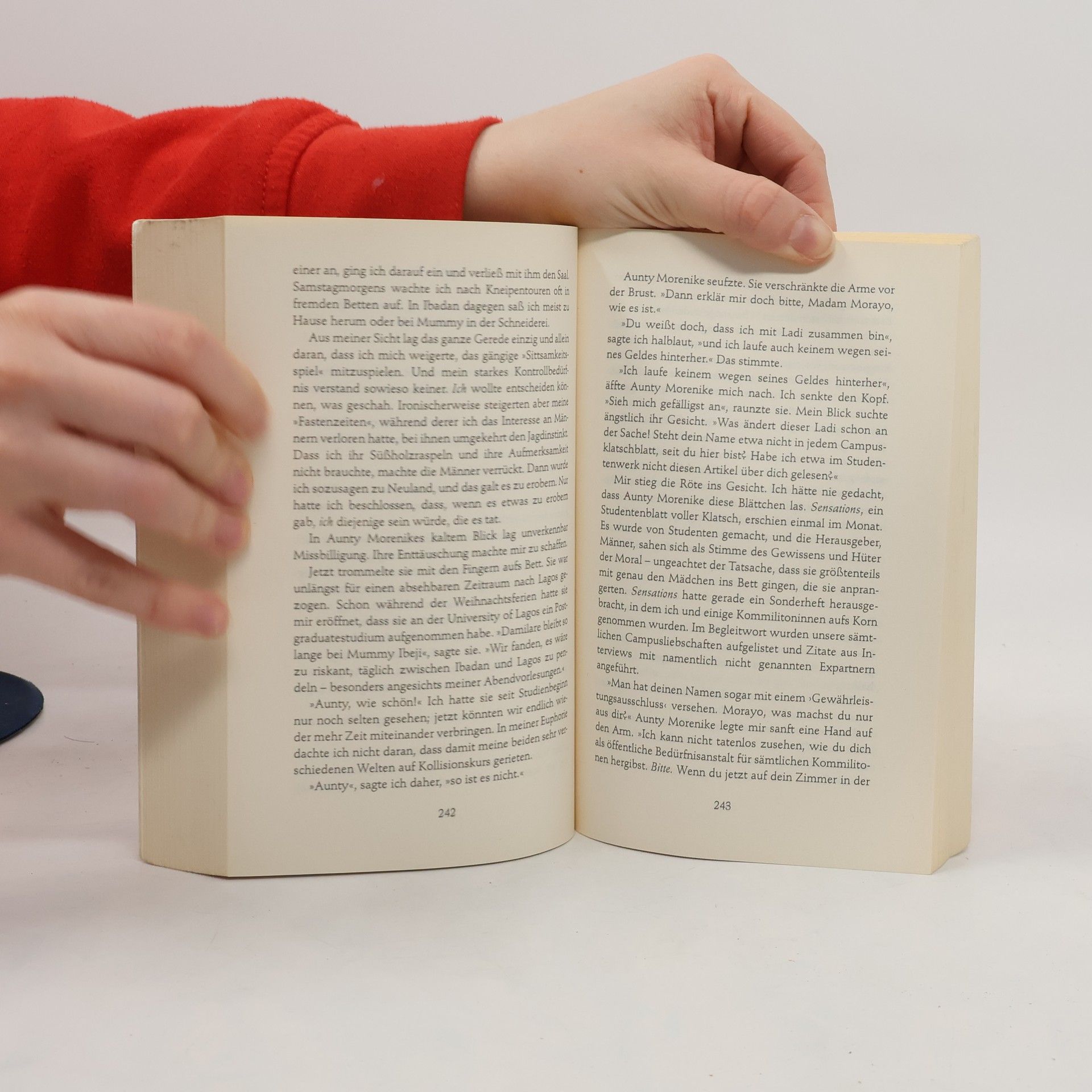 Morayo wächst mit ihrer geliebten Schwester in einer modernen nigerianischen Familie auf. Sie erlebt das Erwachsenwerden behütet, aber voller Tabus. Als Bros T, der charmante Cousin der Mädchen, in der Familie aufgenommen wird, ist Morayo zunächst begeistert, dann aber überfordert, als Bros T sie nachts bedrängt ... Ein dichtes Netz des Schweigens legt sich über das Haus, und das Mädchen erfährt von ihren Eltern keinen Trost. Es wird eine Odyssee, aus der sie stark und voller Zukunftspläne hervorgeht. Ein mutiges, mitreißendes Romandebüt über eine Kindheit in Nigerias Millionenstadt Ibadan.