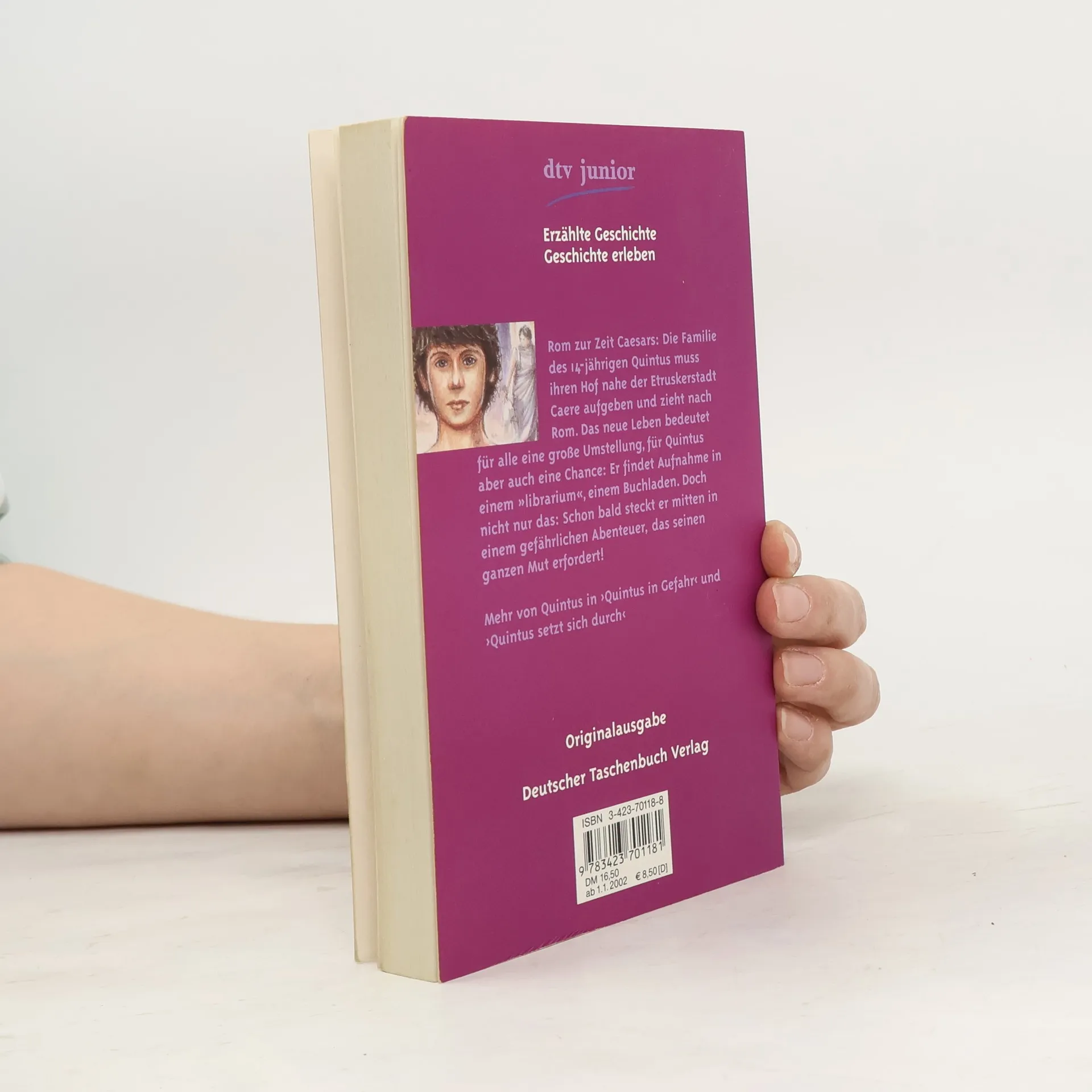 Rom zur Zeit Caesars: Die Familie des 14-jährigen Quintus muss ihren Hof nahe der Etruskerstadt Caere aufgeben und zieht nach Rom. Das neue Leben bedeutet für alle eine große Umstellung, für Quintus aber auch eine Chance: Er findet Aufnahme in einem ›librarium‹, einem Buchladen. Doch nicht nur das: Schon bald steckt er mitten in einem gefährlichen Abenteuer, das seinen ganzen Mut erfordert!
