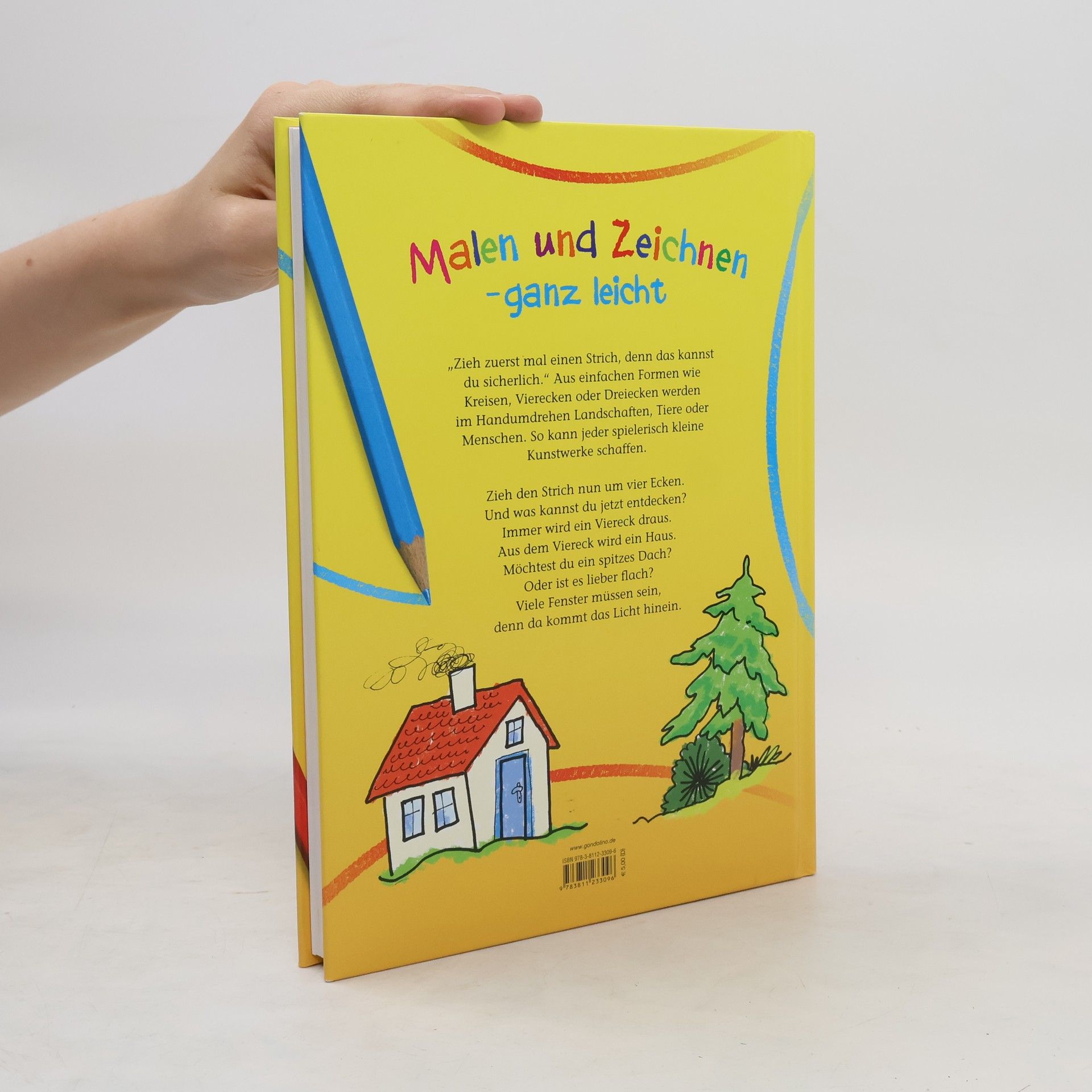 „Zieh zuerst mal einen Strich, denn das kannst du sicherlich.“ Aus einfachen Formen wie Kreisen, Vierecken oder Dreiecken werden im Handumdrehen Landschaften, Tiere oder Menschen. So kann jeder spielerisch kleine Kunstwerke schaffen. Zieh den Strich nun um vier Ecken. Und was kannst du jetzt entdecken? Immer wird ein Viereck draus. Aus dem Viereck wird ein Haus. Möchtest du ein spitzes Dach? Oder ist es lieber flach? Viele Fenster müssen sein, denn da kommt das Licht hinein.