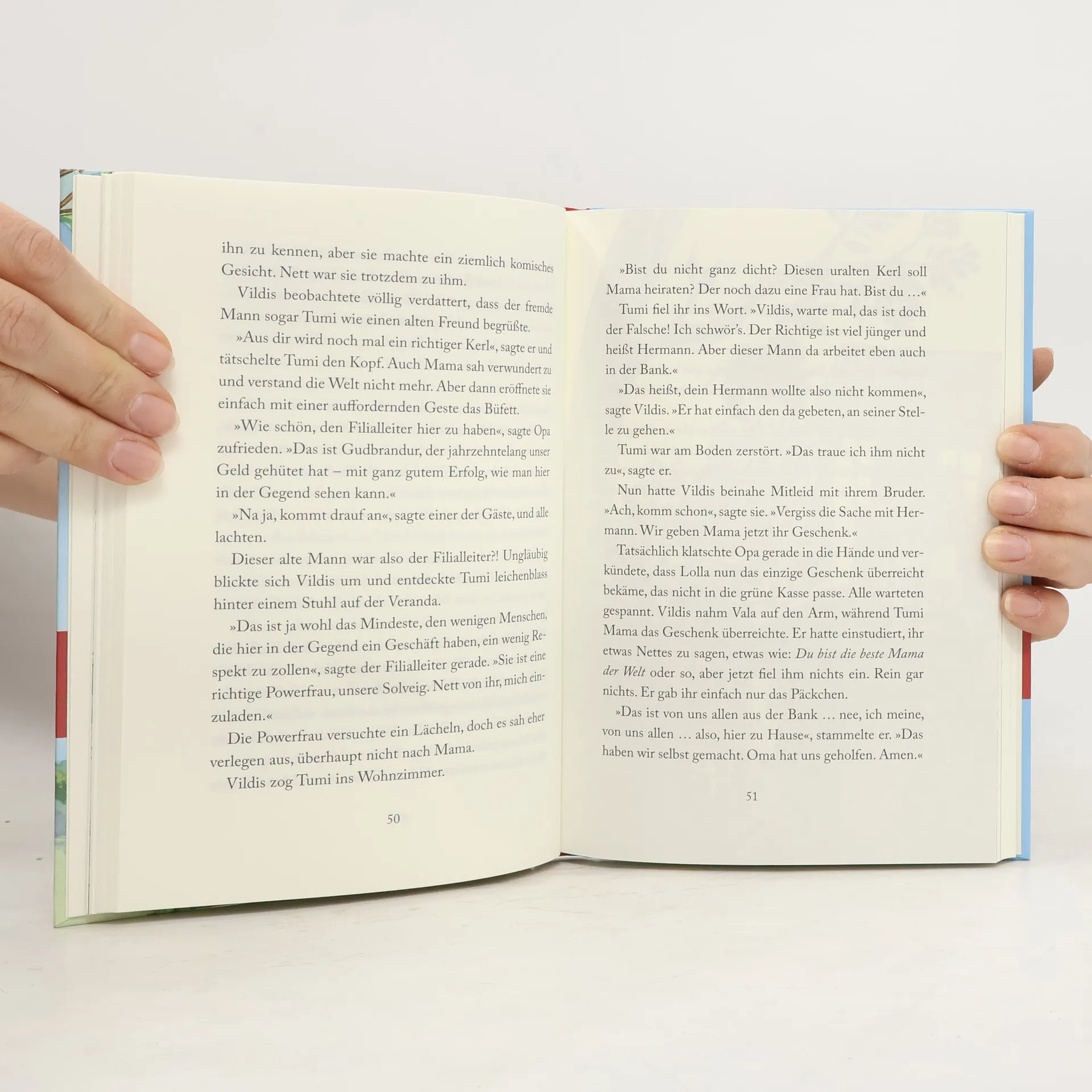 Alles, was Lolla fehlt, ist der richtige Mann an ihrer Seite sowie ab und zu das nötige Kleingeld. So zumindest sieht es der achtjährige Tumi. Eine Lösung für dieses Problem hat er natürlich auch schon: Seine Mama muss einfach mit dem örtlichen Bankdirektor verkuppelt werden. Doch das ist gar nicht so leicht. Statt des neuen Wunsch-Papas steht an Lollas großem Geburtstagsfest plötzlich der alte Filialleiter im Garten der Familie. Der bedankt sich zwar artig für die Einladung, ist aber ganz und gar nicht der, den sich der Junge vorgestellt hatte. Aber bestimmt fällt Tumi da auch noch was ein. Eine wundervolle Wohlfühl-Familiengeschichte voller Herz und Witz.