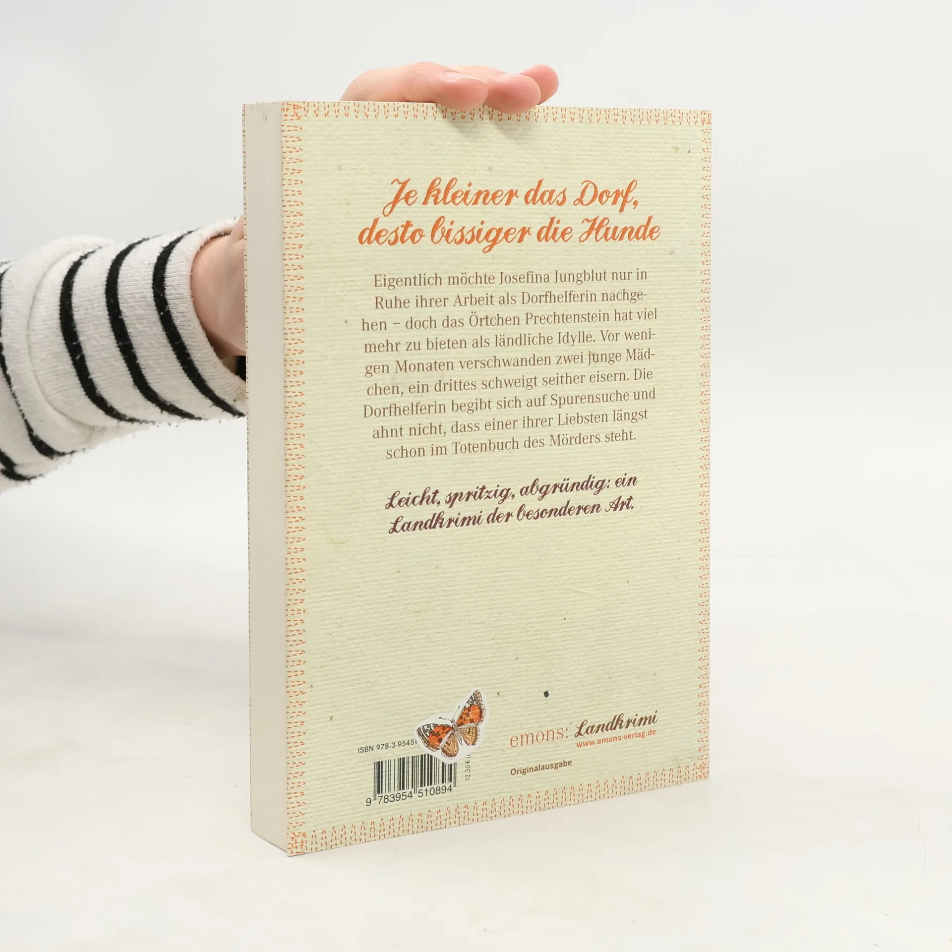 Eigentlich möchte Josefina Jungblut nur in Ruhe ihrer Arbeit als Dorfhelferin nachgehen – doch das Örtchen Prechtenstein hat viel mehr zu bieten als ländliche Idylle. Vor zwei Jahren verschwand ein junges Mädchen, ein anderes schweigt seither eisern. Die Dorfhelferin begibt sich auf Spurensuche und ahnt nicht, dass einer ihrer Liebsten längst schon im Totenbuch des Mörders steht.