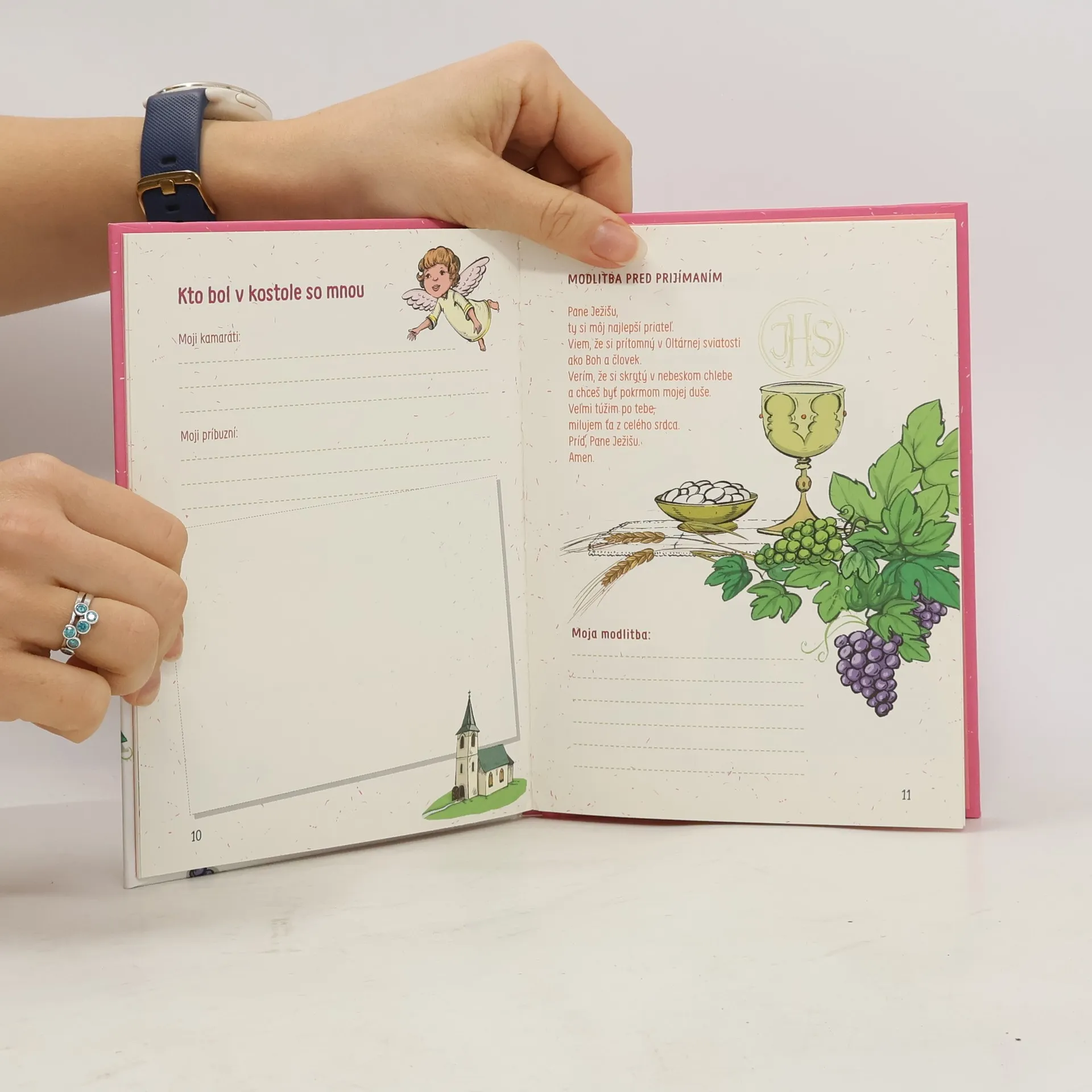Táto knižka bude spomienkou na deň, keď do srdca prvý raz vstúpil Pán Ježiš v Eucharistii. Zaznamenávajú sa do nej všetky dôležité okamihy. Zaplňuje sa zápiskami, fotkami, kresbami, úlohami i prianiami v čase prvého svätého prijímania.