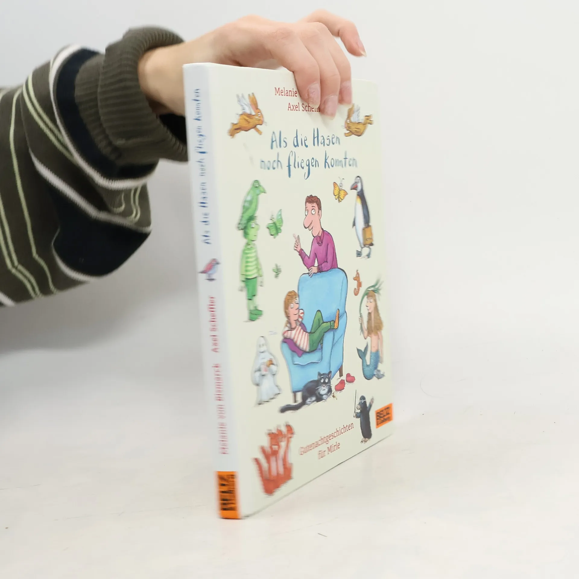 Mirles Vater erzählt die besten Gutenachtgeschichten der Welt! Witzige und absurde Geschichten, über die sich Kinder wunderbar amüsieren, liebevoll erzählt von einer neuen Autorin. Und wohl schon deshalb etwas Besonderes, weil Axel Scheffler sie mit vielen bezaubernden Bildern illustriert hat. Schöner kann man nicht zu Bett gehen! Früher einmal waren alle Menschen grün - sommergrün, grasgrün, flaschengrün. Die Hasen konnten noch fliegen, die Eichhörnchen sangen im Chor und die Hunde erzählten sich Witze. Winzlinge wohnten in Tante Elsies Blumentopf, man spielte mit Seepferdchen Unterwassertennis und unterhielt sich in Reimen. Und Papa verwandelte sich in einen Esel. Ob das alles wirklich so war? Manchmal hält Mirle ihren Vater wirklich für etwas verrückt, aber er erzählt die besten Geschichten der Welt. 14 herrlich absurde Geschichten zum Vorlesen mit vielen wunderschön komischen Bildern von Axel Scheffler.