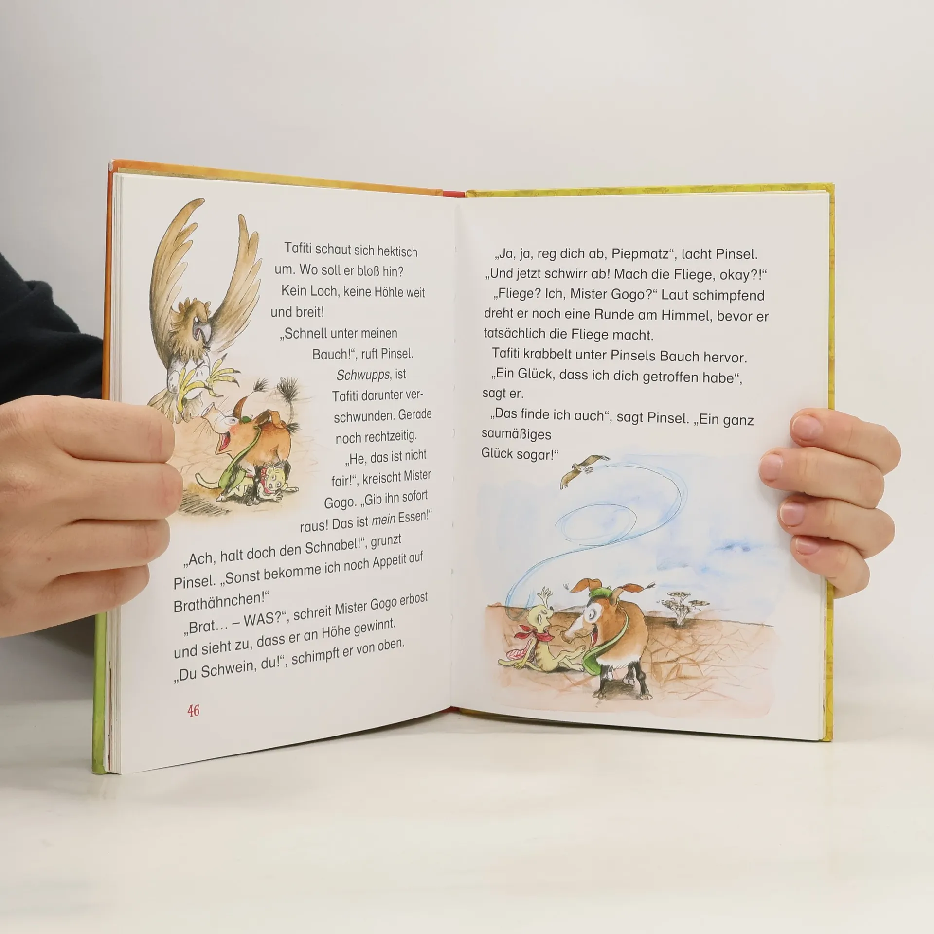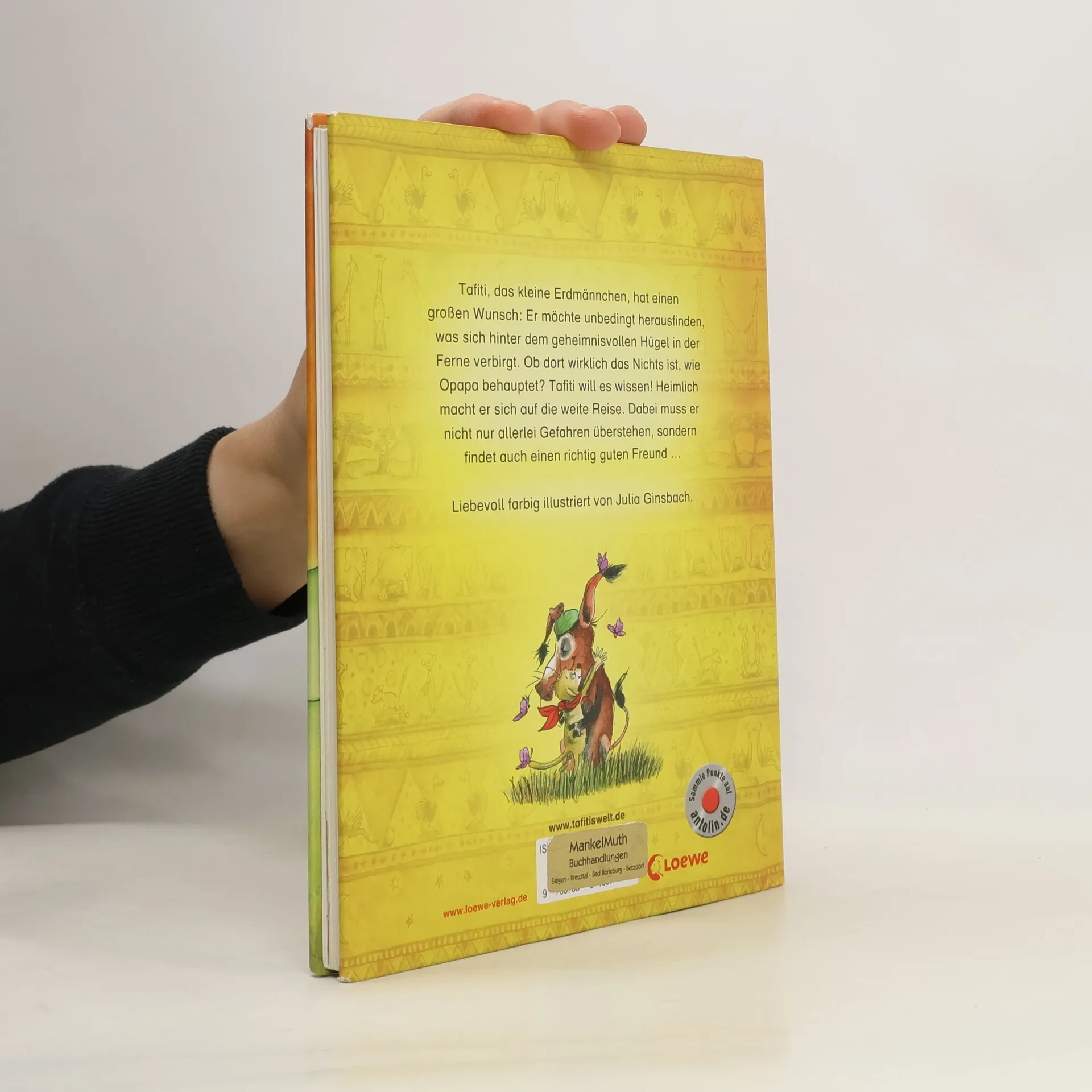 Tafiti, das kleine Erdmännchen, hat einen großen Wunsch: Er möchte unbedingt herausfinden, was sich hinter dem geheimnisvollen Hügel in der Ferne verbirgt. Ob dort wirklich das Nichts ist, wie sein Opapa behauptet? Tafiti will es wissen! Heimlich macht er sich auf die weite Reise. Dabei muss er nicht nur allerlei Gefahren überstehen, sondern findet auch einen richtigen guten Freund ..