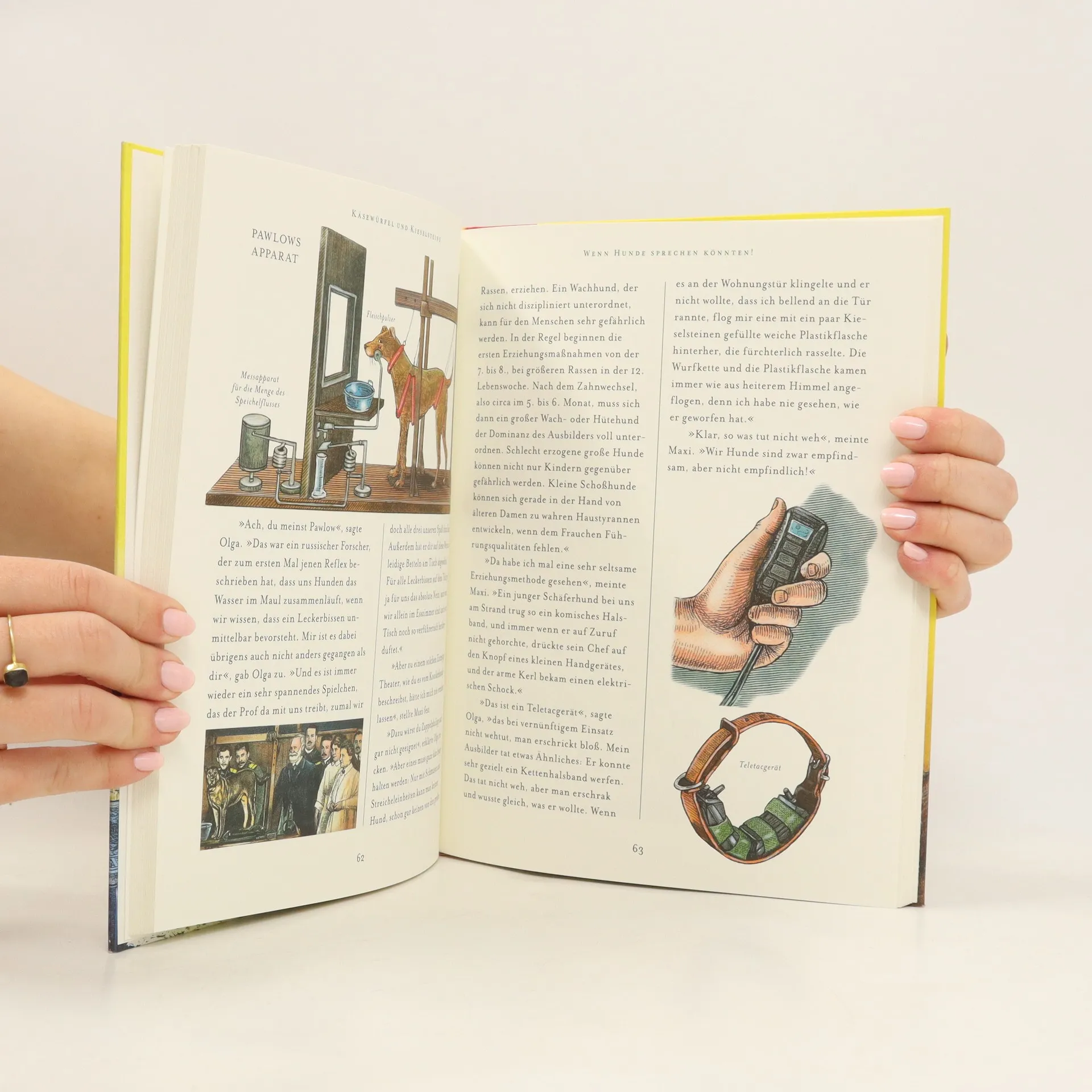 Die erfahrene Bernhardinerhündin Olga und der junge Pharaonenhund Maxi liegen vor dem Kamin. Maxi stellt Fragen, wie Kinder sie stellen, Olga antwortet. In 18 Kapiteln lässt der ehemalige Zoodirektor Henning Wiesner die Hundedame Verblüffendes erzählen, zum Beispiel, warum Schlappohren vorteilhaft und Küsschen ungesund sein können. Der Leser erfährt aber auch ganz praktische Dinge. So kann er lernen, wie man einem Hund das Betteln bei Tisch abgewöhnt, und erfährt, wie Hunde wahre Schätze erschnuppern. Dieses ungewöhnliche Hundebuch bietet erstaunliche Einblicke in die Evolution des ältesten aller Haustiere. Mit zahlreichen stimmungsvollen Illustrationen von Günter Mattei.