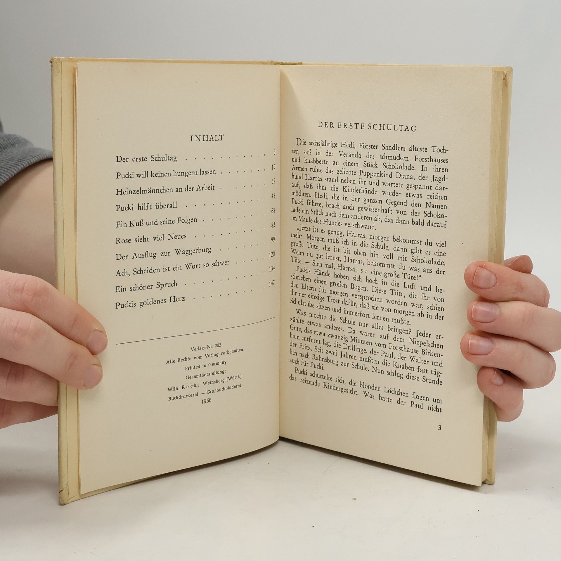 Hedi Sandler, das sechsjährige Försterstöchterchen, das in Freiheit in Wald und Feld aufgewachsen ist, muss nun in die nahe Kleinstadt zur Schule. Wie Pucki sich mit dem ersten Schuljahr auseinandersetzt und wie sie aus ihrem mitfühlendem Herzen alle Armut aus der Welt schaffen will ist hübsch und spannend geschildert.