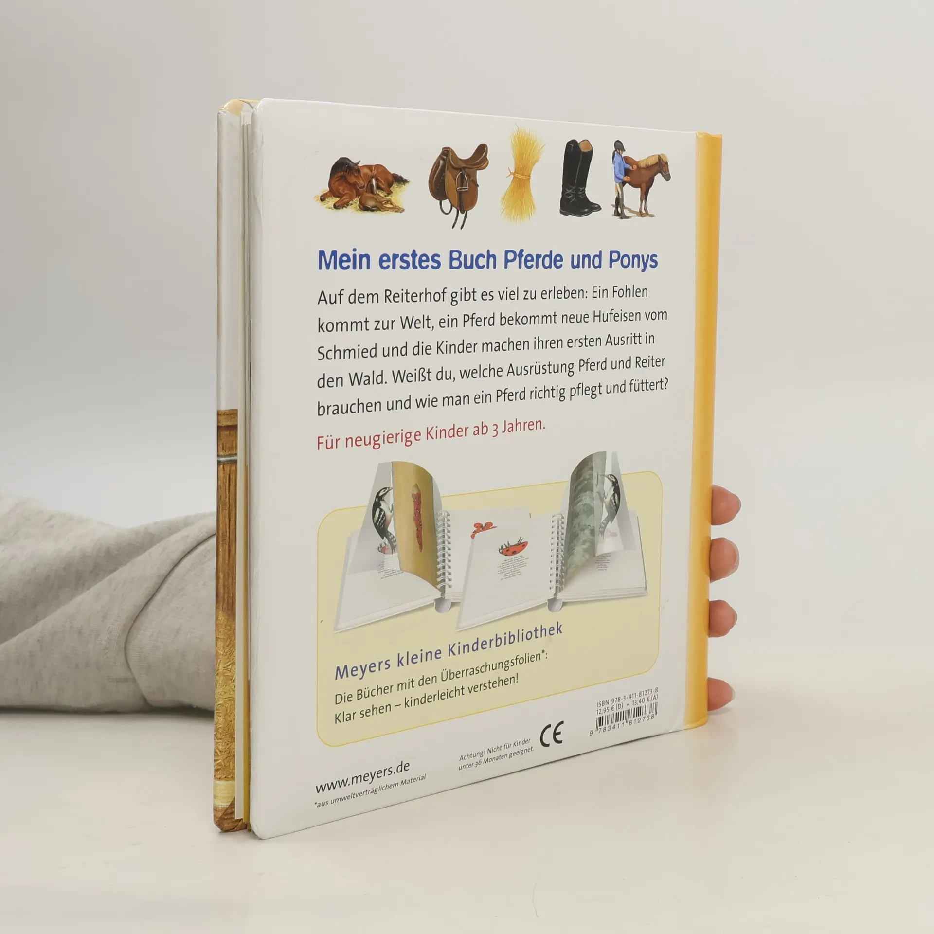 Das passende Tierbuch für alle Pferdefans ab drei Jahren. Denn auf dem Reiterhof gibt es viel zu erleben: Ein kleines Fohlen kommt auf die Welt. Das Pferd bekommt neue Hufeisen vom Schmied und die Kinder machen ihren ersten Ausritt in den Wald. Welche Ausrüstung benötigen Pferd und Reiter und wie pflegt und füttert man ein Pferd richtig? Für die Kinder gilt: Entdecke die Welt der Pferde und Ponys! Beim Umblättern der bunt bedruckten Folienseiten wird die Tierwelt lebendig: Verborgenes wird sichtbar und verblüffende Veränderungen bereiten echten Entdeckerspaß.