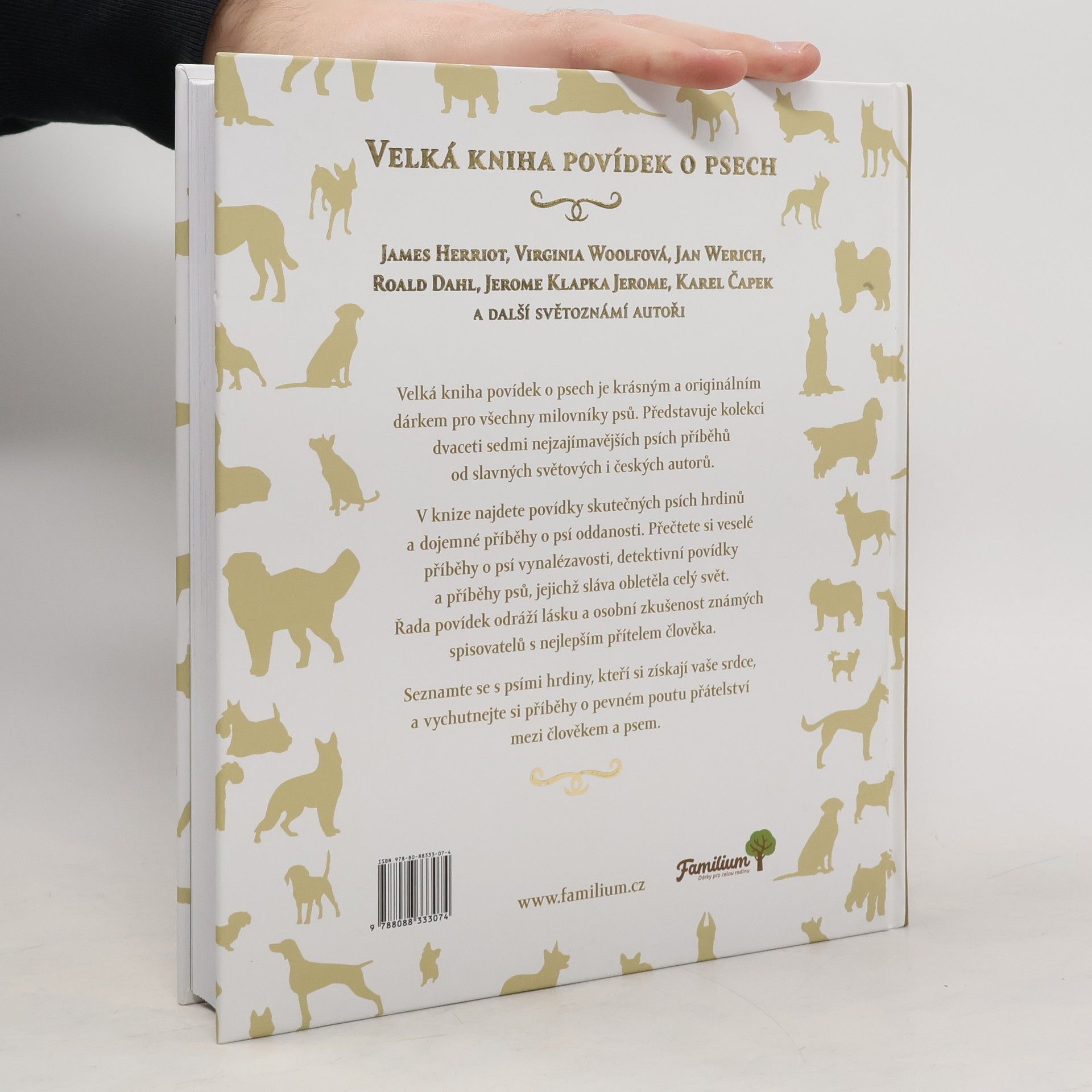 „Velká kniha povídek o psech“ je krásným a originálním dárkem pro všechny milovníky psů. Kniha nabízí kolekci nejzajímavějších psích příběhů od slavných světových i českých autorů. Najdete zde díla Jamese Herriota, Jana Wericha, Roalda Dahla, Virginie Woolfové, Jeroma Klapky Jeroma, Karla Čapka a dalších. Začtěte se do šestadvaceti napínavých, zábavných i dojemných příběhů o psí věrnosti, odvaze, chytrosti a nápaditosti. Řada povídek odráží lásku a osobní zkušenost známých spisovatelů s nejlepším přítelem člověka. „Velká kniha povídek o psech“ představuje výběr těch nejlepších povídek ze světové literatury se psími hrdiny v hlavní roli. Knížka má větší dárkový formát, a navíc obsahuje originální tematické ilustrace, které vytvořila Pavlína Veselá.
