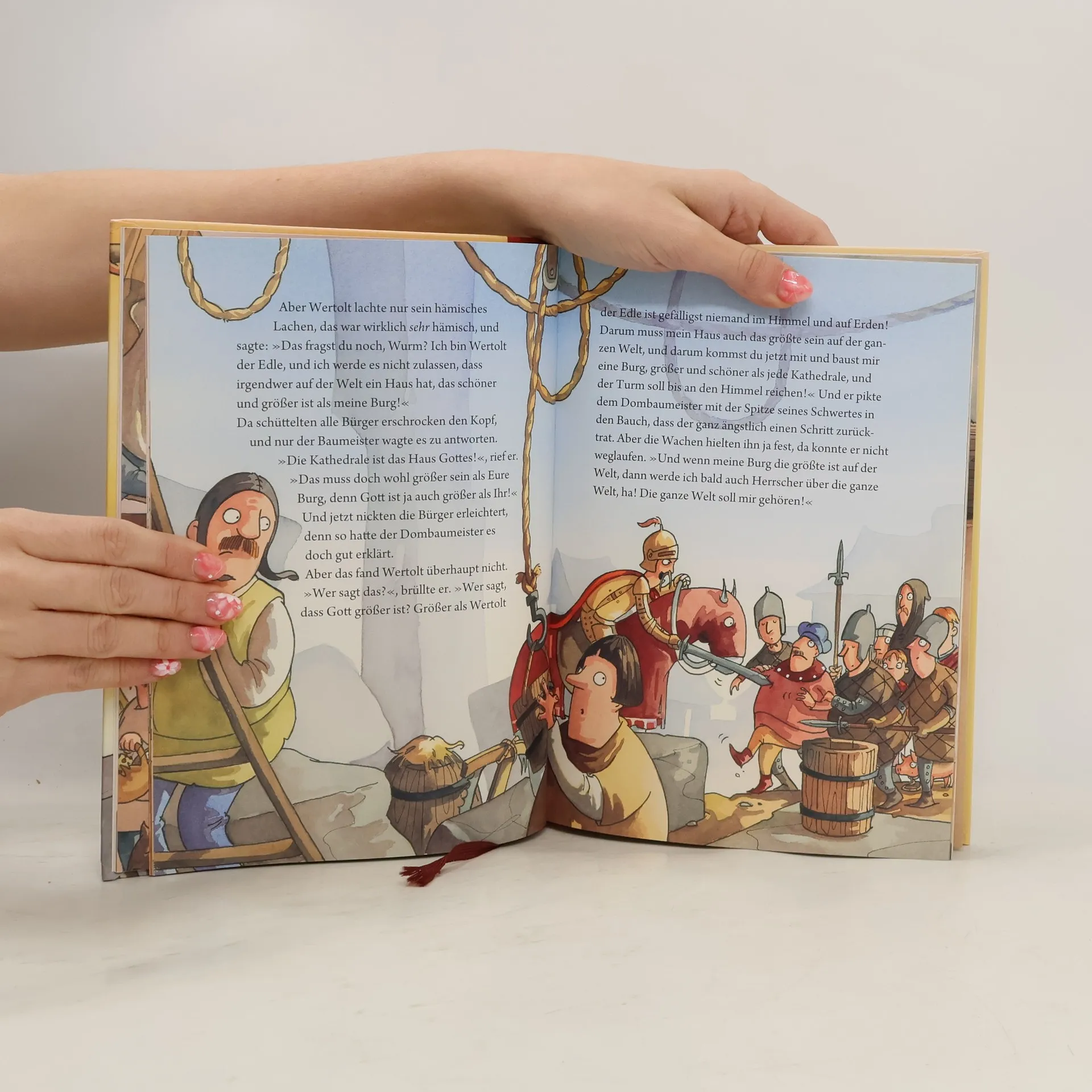 In „Der kleine Ritter Trenk und der Turmbau zu Babel“ entführt Kirsten Boie junge Leser in ein aufregendes Mittelalterabenteuer. Der kleine Ritter Trenk und seine Freundin Thekla freuen sich auf den Bau der neuen Kathedrale, doch ihre Pläne werden durch den bösen Ritter Wertolt, der den Dombaumeister entführt, durchkreuzt. Wertolt verfolgt den finsteren Plan, die größte Burg der Welt zu errichten. Trenk und Thekla, unterstützt von ihren Freunden, schleichen sich bei Wertolt ein und verursachen ein Chaos, das den gescheiterten Turmbau zu Babel harmlos erscheinen lässt. Dieses mitreißende Vorleseabenteuer ist reich illustriert von Barbara Scholz und zieht junge Ritterfans in seinen Bann. Die spannende und lehrreiche Geschichte eignet sich ideal für Leser*innen ab 6 Jahren, die Abenteuer im Mittelalter lieben. Die großen farbigen Bilder fangen die mittelalterliche Atmosphäre perfekt ein und machen das Buch zu einem visuellen Erlebnis. Die mutigen Taten von Trenk und seinen Freunden regen die Fantasie an und zeigen, dass Cleverness und Mut zum Sieg führen können. Es bietet Lese- und Vorlesespaß für die ganze Familie und ermutigt Kinder, mehr über das Mittelalter und den Zusammenhalt in der Freundschaft zu erfahren. Ein weiteres meisterhaft erzähltes Abenteuer von einer der beliebtesten Kinderbuchautorinnen.