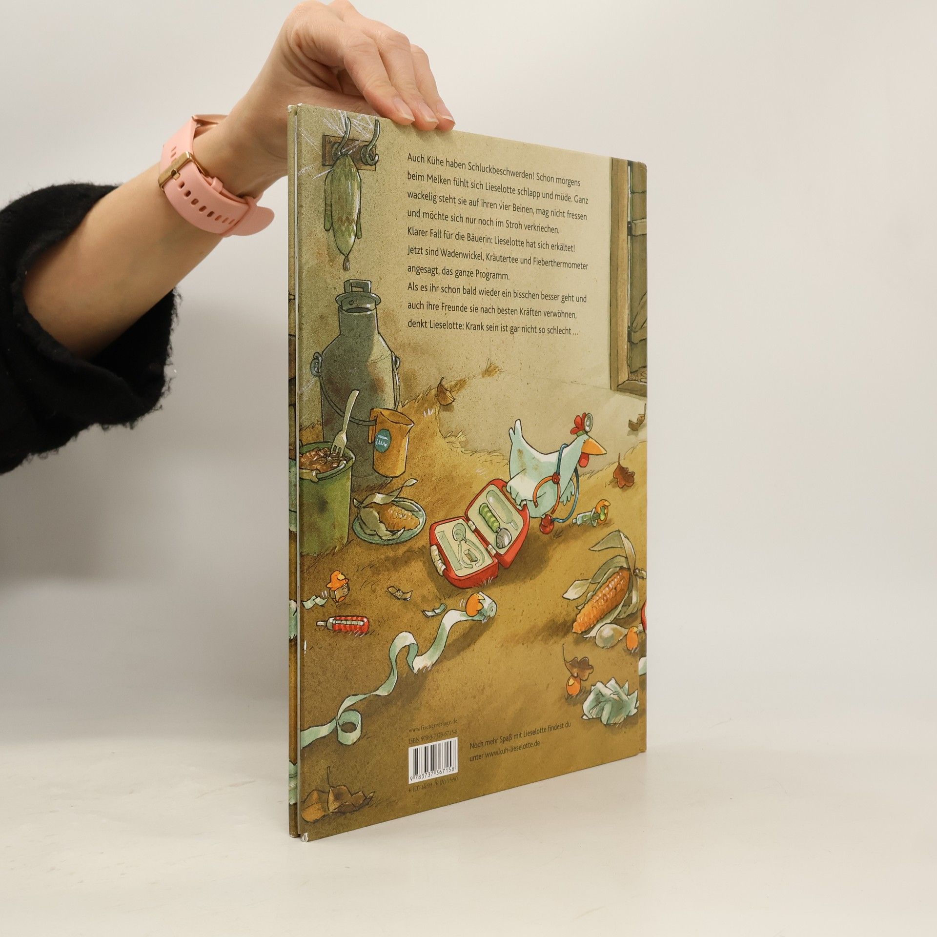 Auch Kühe haben Schluckbeschwerden! Schon morgens beim Melken fühlt sich Lieselotte schlapp und müde. Ganz wackelig steht sie auf ihren vier Beinen, mag nicht fressen und möchte sich nur noch im Stroh verkriechen. Klarer Fall für die Bäuerin: Lieselotte hat sich erkältet! Jetzt sind Wadenwickel, Kräutertee und Fieberthermometer angesagt, das ganze Programm. Als es ihr schon bald wieder ein bisschen besser geht und auch ihre Freunde sie nach besten Kräften verwöhnen, denkt Lieselotte: Krank sein ist gar nicht so schlecht ...