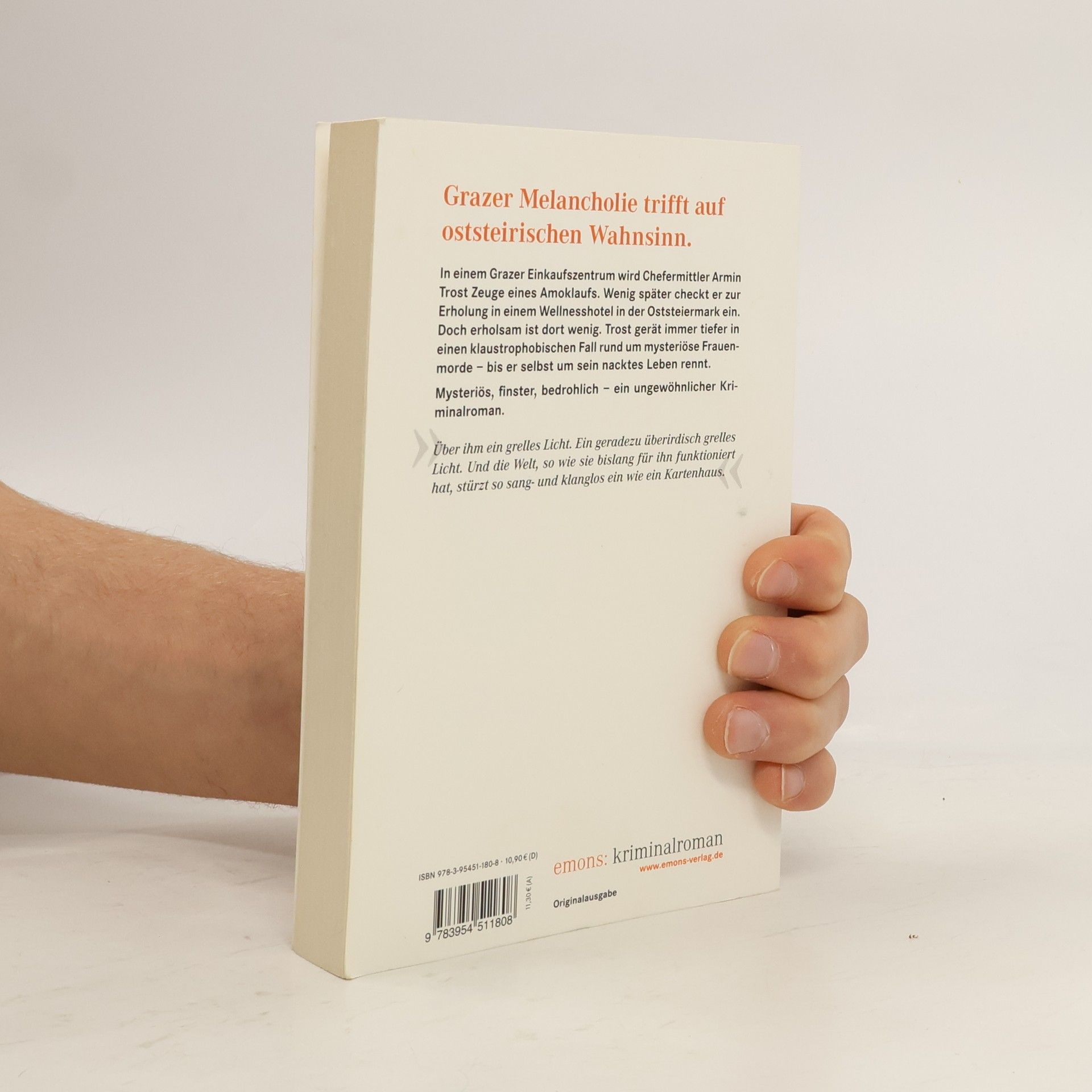 In einem Grazer Einkaufszentrum wird Chefermittler Armin Trost Zeuge eines Amoklaufs. Wenig später checkt er zur Erholung in einem Wellnesshotel in der Oststeiermark ein. Doch erholsam ist dort wenig. Trost gerät immer tiefer in einen klaustrophobischen Fall rund um mysteriöse Frauenmorde - bis er selbst um sein nacktes Leben rennt. Robert Preis wurde 1972 in Graz geboren und ist dort aufgewachsen. Nach dem Studium in Wien und einem längeren Auslandsaufenthalt in Kroatien lebt er heute mit seiner Familie wieder in der Nähe seiner Heimatstadt. Er arbeitet als Journalist bei einer Tageszeitung und schrieb zahlreiche Sachbücher und Romane.