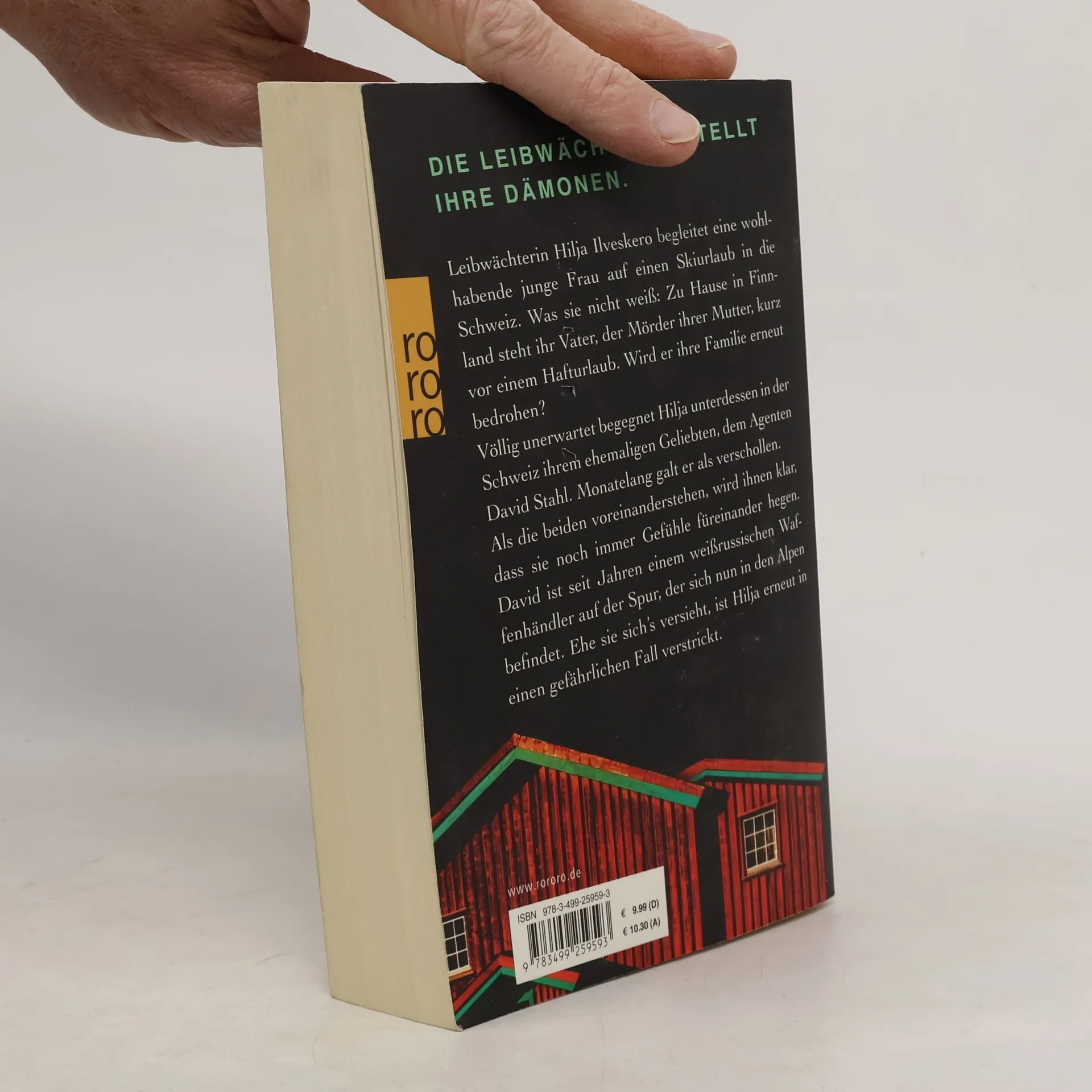 Die Leibwächterin stellt ihre Dämonen. Leibwächterin Hilja Ilveskero begleitet eine wohlhabende junge Frau auf einen Skiurlaub in die Schweiz. Was sie nicht weiß: Zu Hause in Finnland steht ihr Vater, der Mörder ihrer Mutter, kurz vor einem Hafturlaub. Wird er ihre Familie erneut bedrohen?Völlig unerwartet begegnet Hilja unterdessen in der Schweiz ihrem ehemaligen Geliebten, dem Agenten David Stahl. Monatelang galt er als verschollen. Als die beiden voreinander stehen, wird ihnen klar, dass sie noch immer Gefühle füreinander hegen. David ist seit Jahren einem weißrussischen Waffenhändler auf der Spur, der sich nun in den Alpen befindet. Ehe sie sich's versieht, ist Hilja erneut in einen gefährlichen Fall verstrickt.
