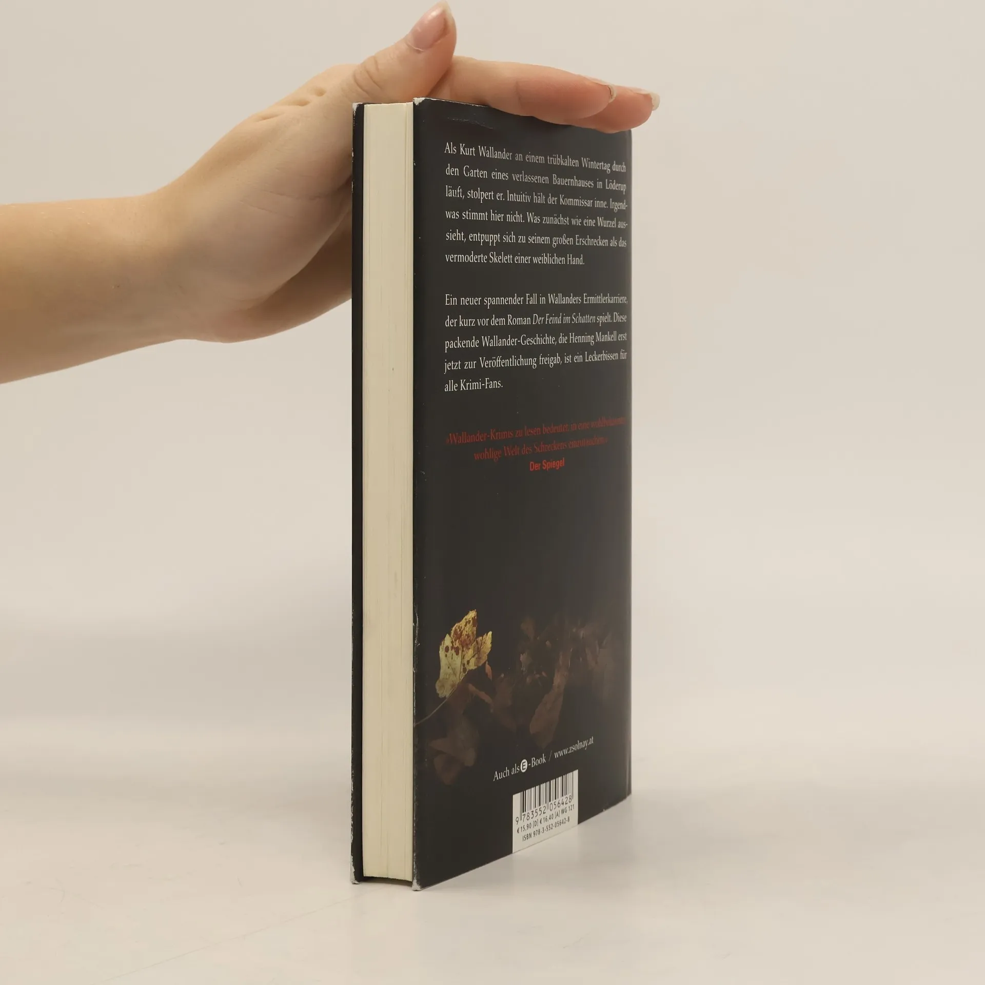 Ystad, Schweden, 2002: Wallander fühlt sich ausgebrannt. Dass seine Tochter und Kollegin Linda noch bei ihm wohnt, macht seine Laune nicht besser. Von einem Haus im Grünen erhofft er sich Erholung, dann aber findet er dort eine skelettierte Hand, und den Kommissar erwartet ein neuer Fall. Die Frauenleiche, die zu der Hand gehört, wurde schon vor rund sechzig Jahren vergraben. Diese packende neue Wallander-Geschichte ist ein Leckerbissen für Krimi-Leser.